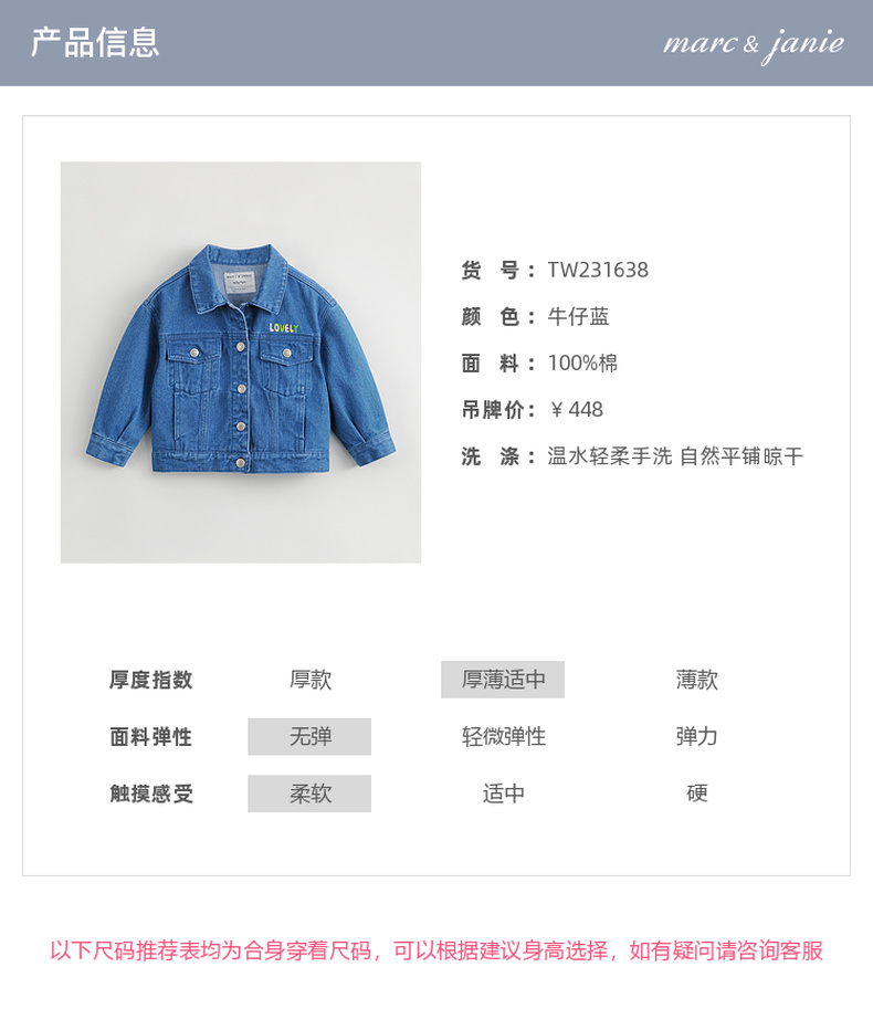 马克珍妮秋装新款 女童趣味小花全棉休闲牛仔外套231638