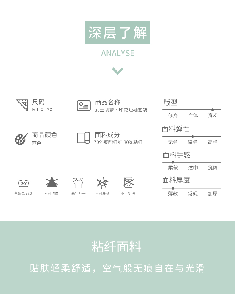 美季美优女士胡萝卜印花短袖套装J320520
