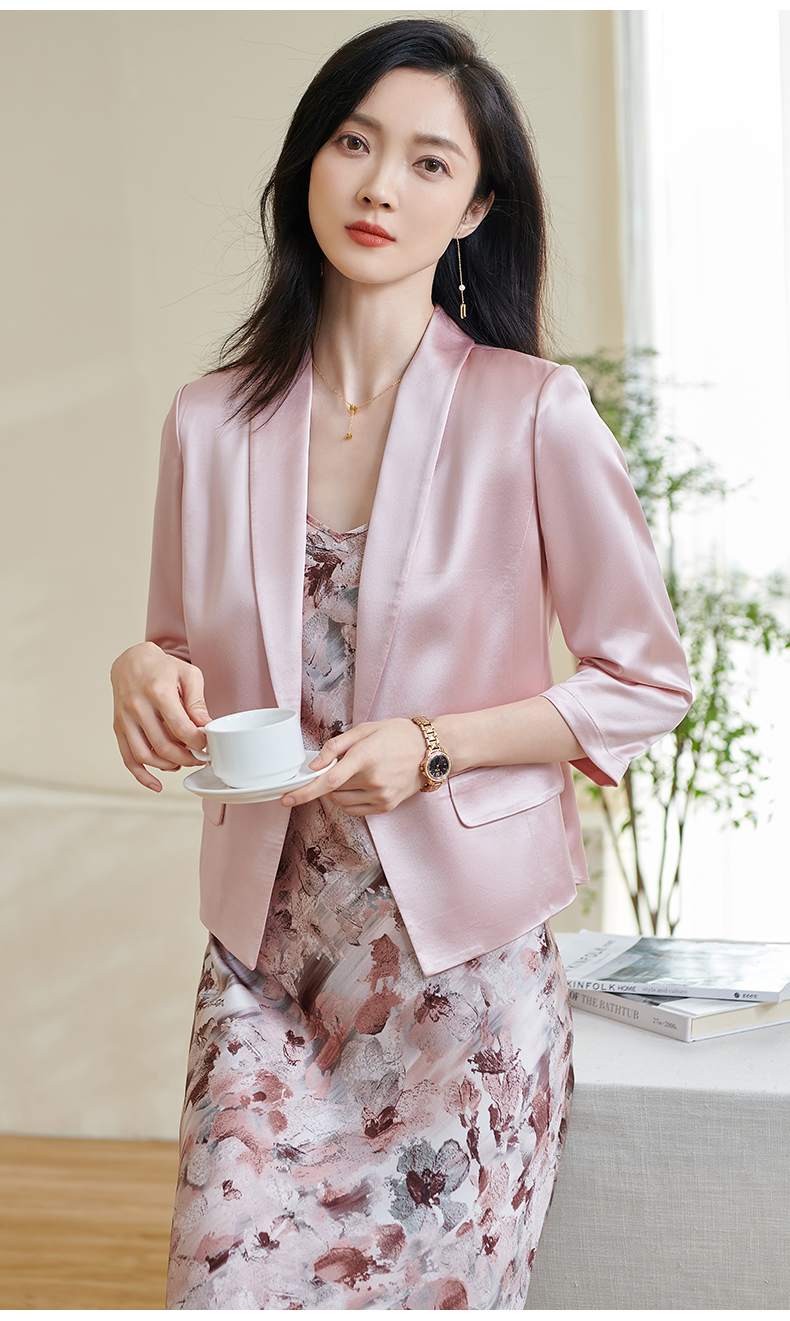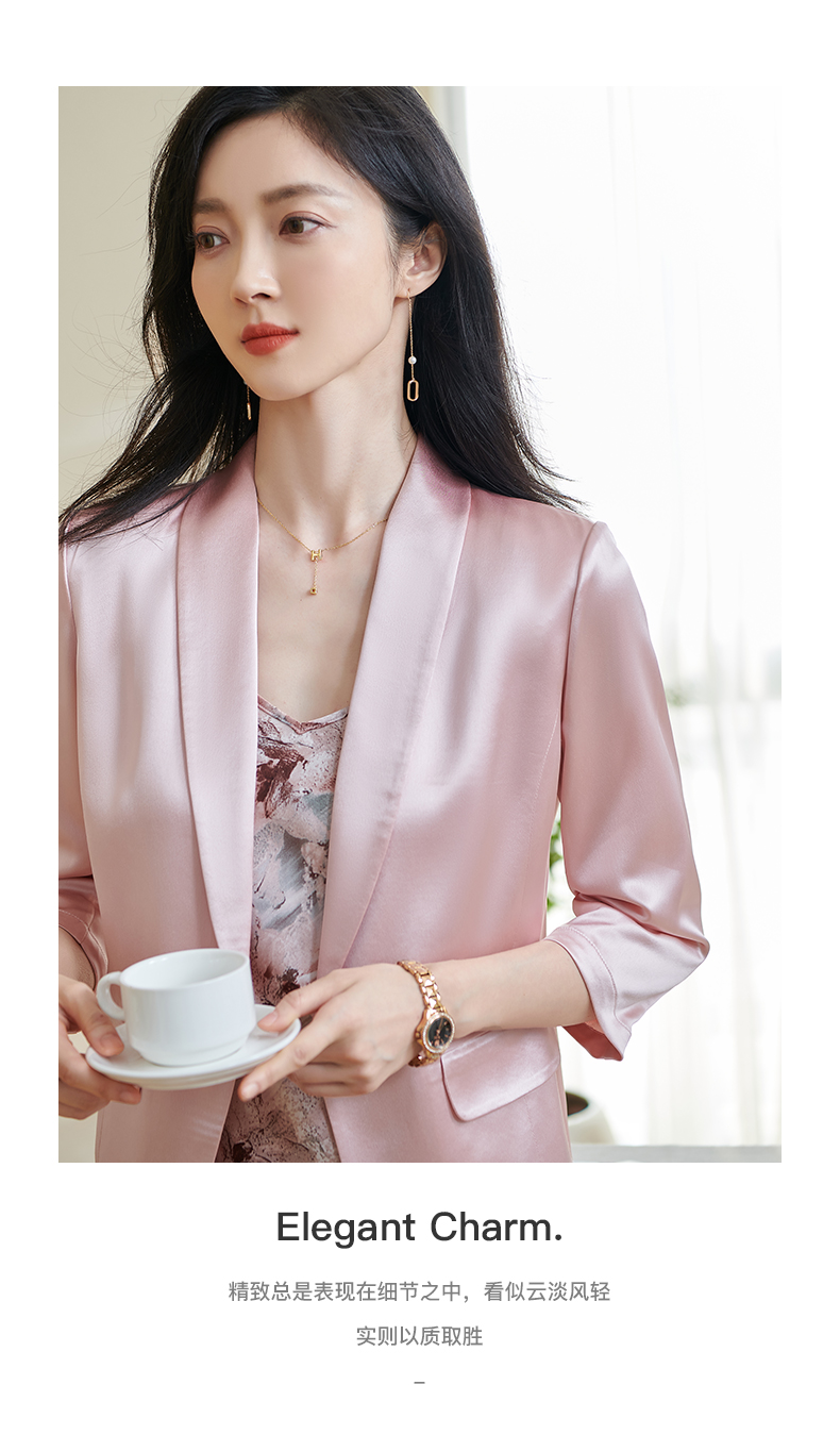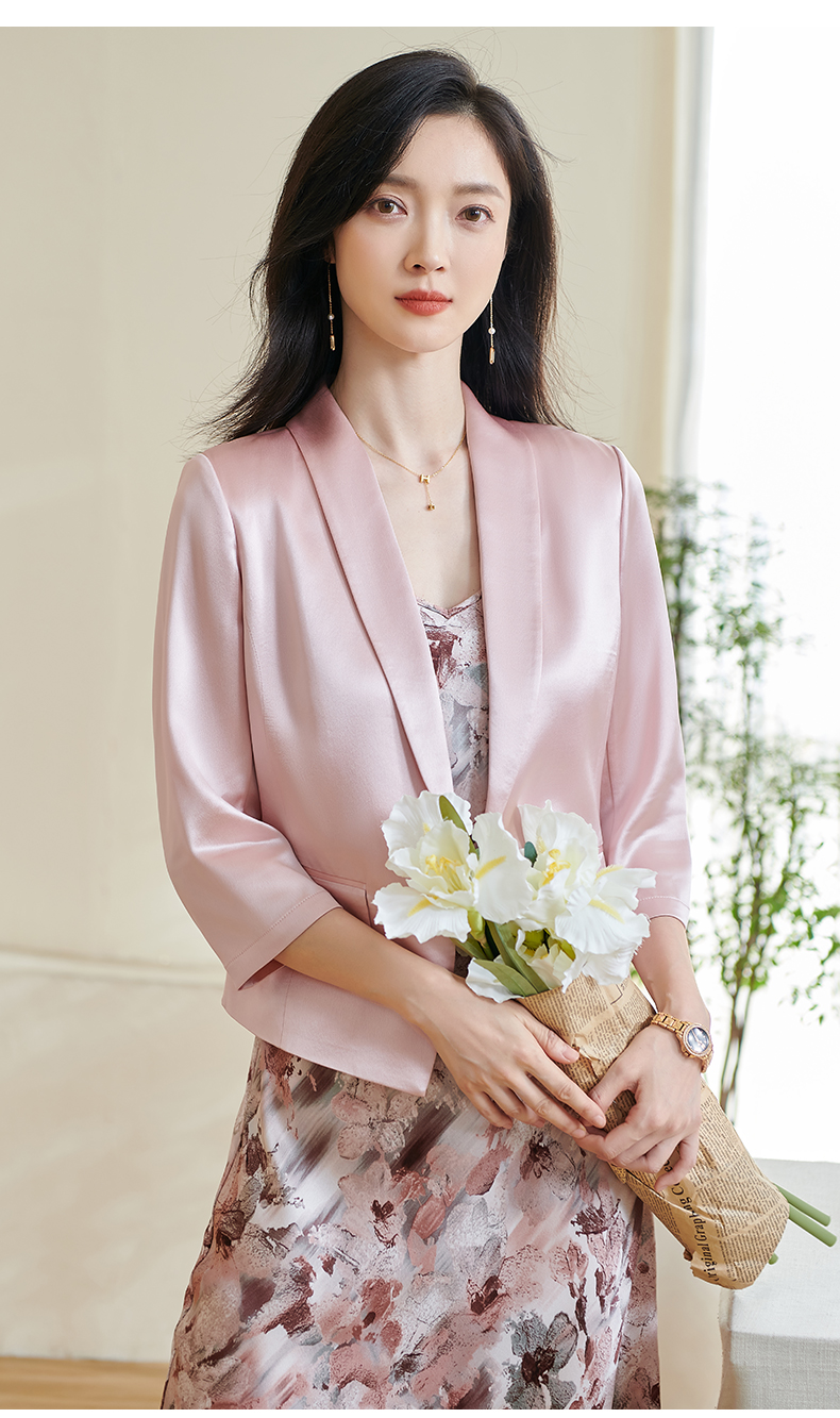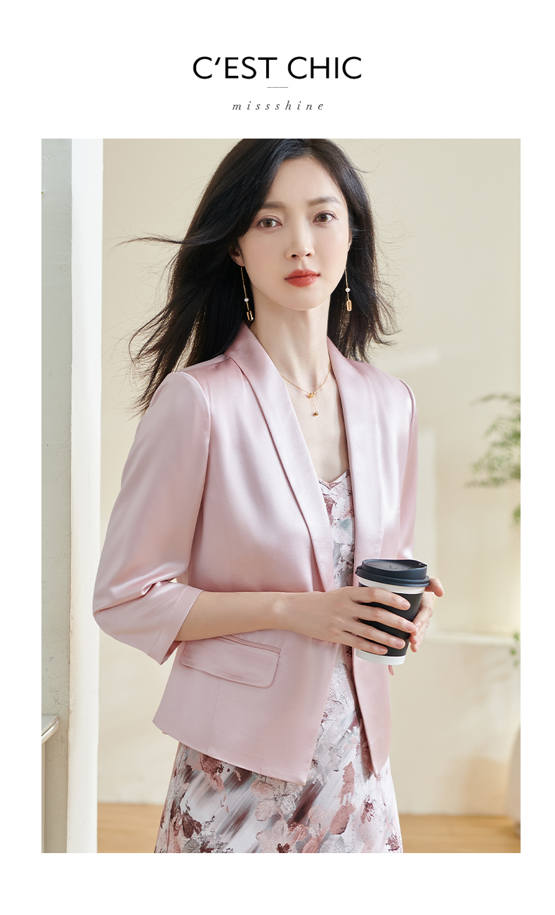 剩S/M/L/XL/XXL 米思阳2026春季新款气质高级感醋酸西装外套宽松七分袖弹力上衣女0496