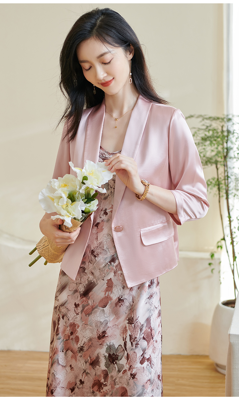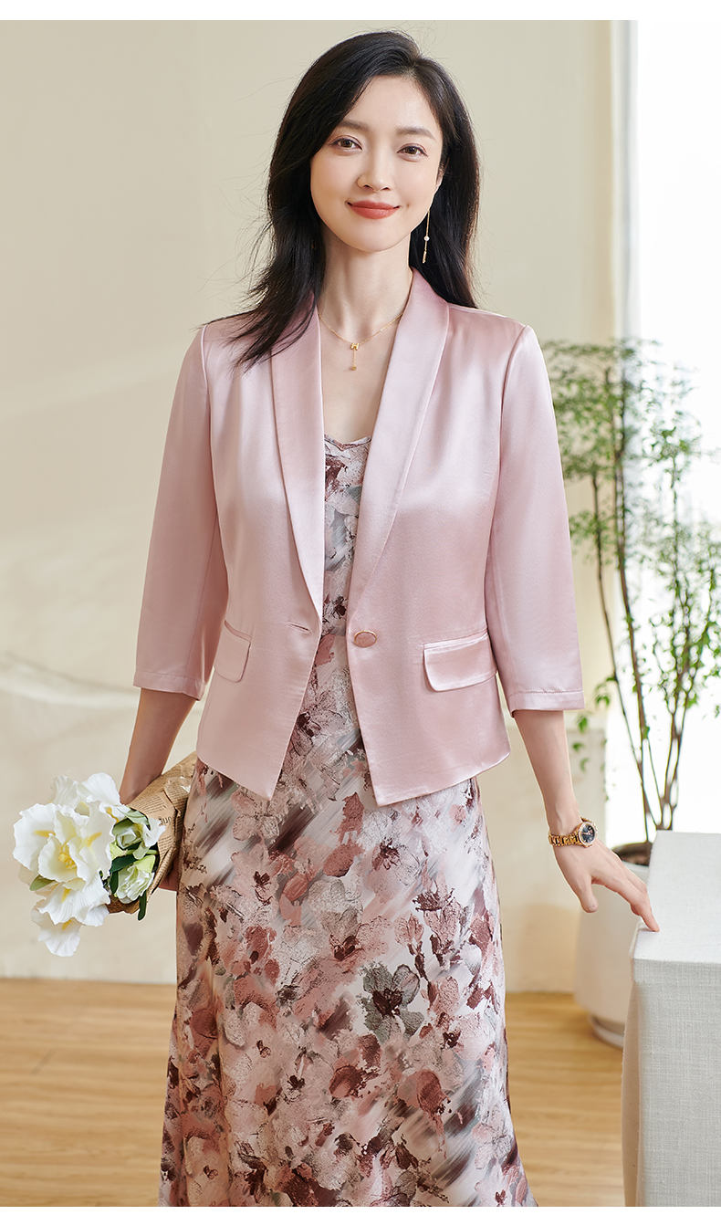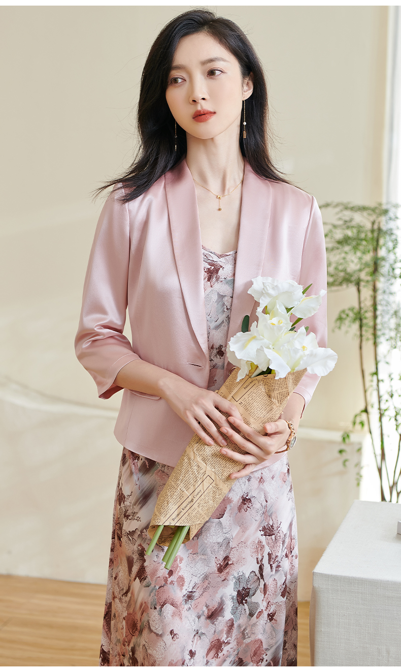 剩S/M/L/XL/XXL 米思阳2026春季新款气质高级感醋酸西装外套宽松七分袖弹力上衣女0496