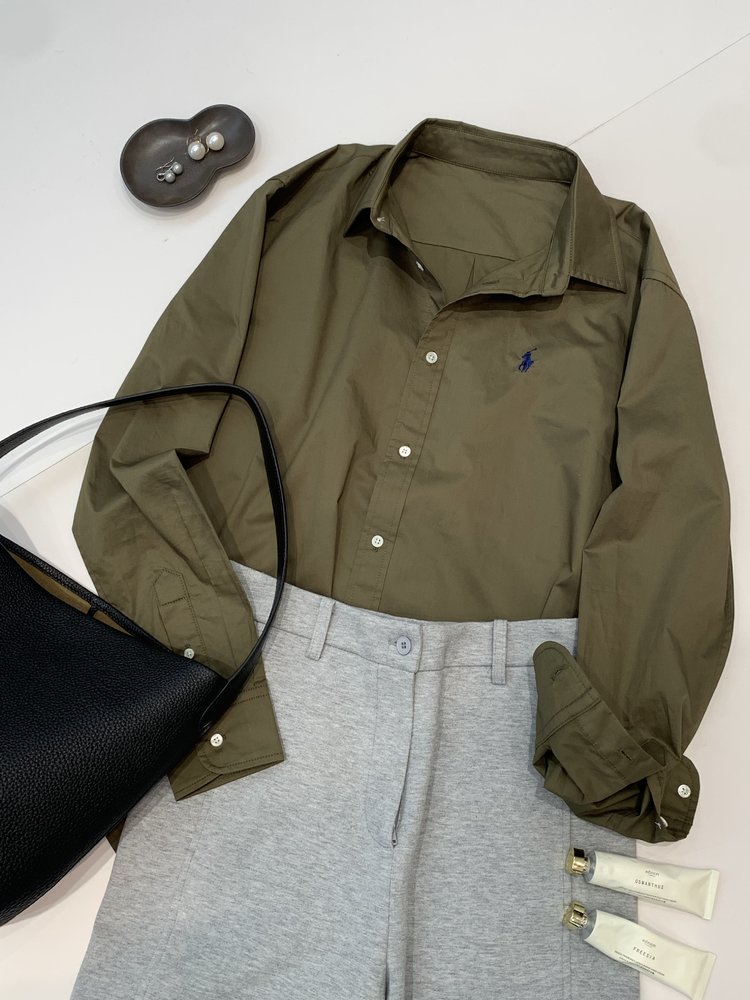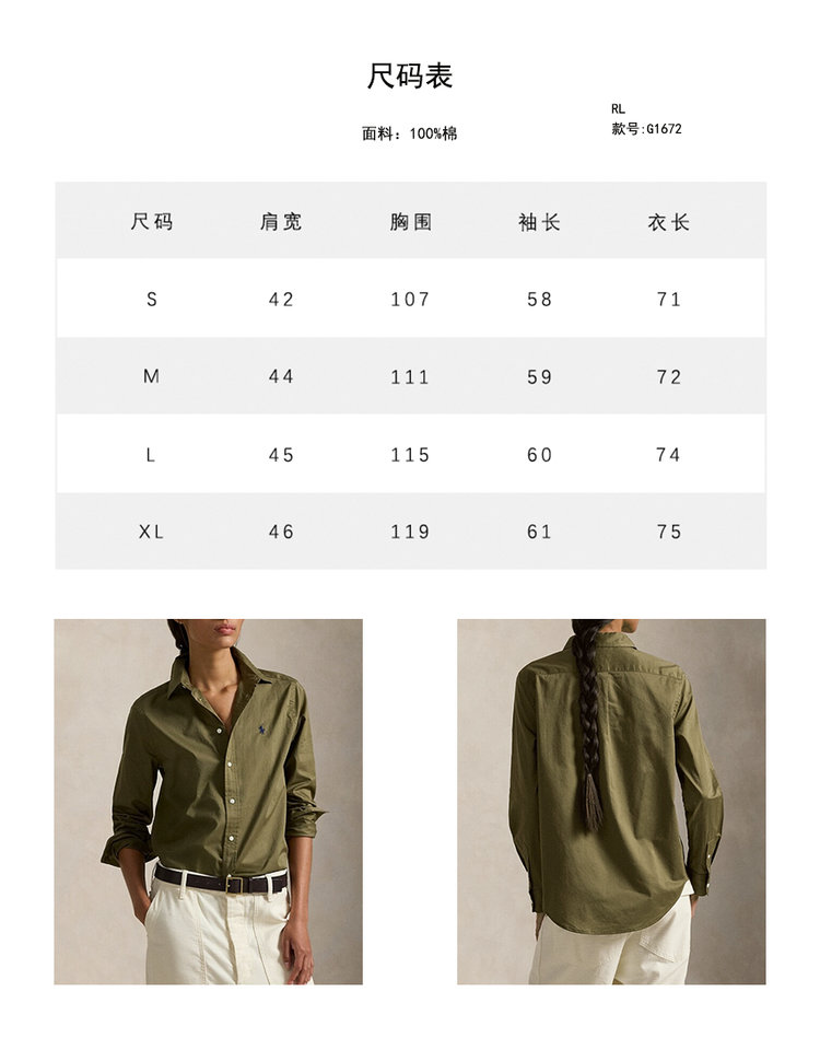【高品质私服】【RL经典版深绿斜纹棉布衬衫】经典版型,纯棉面料,既有筋骨,又有柔和的触感G1672-CC【无标出货 介意慎拍】