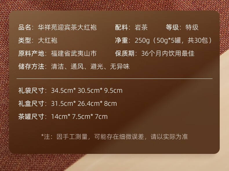 华祥苑大红袍 武夷岩茶乌龙茶迎宾庄园茶大红袍礼盒装250g