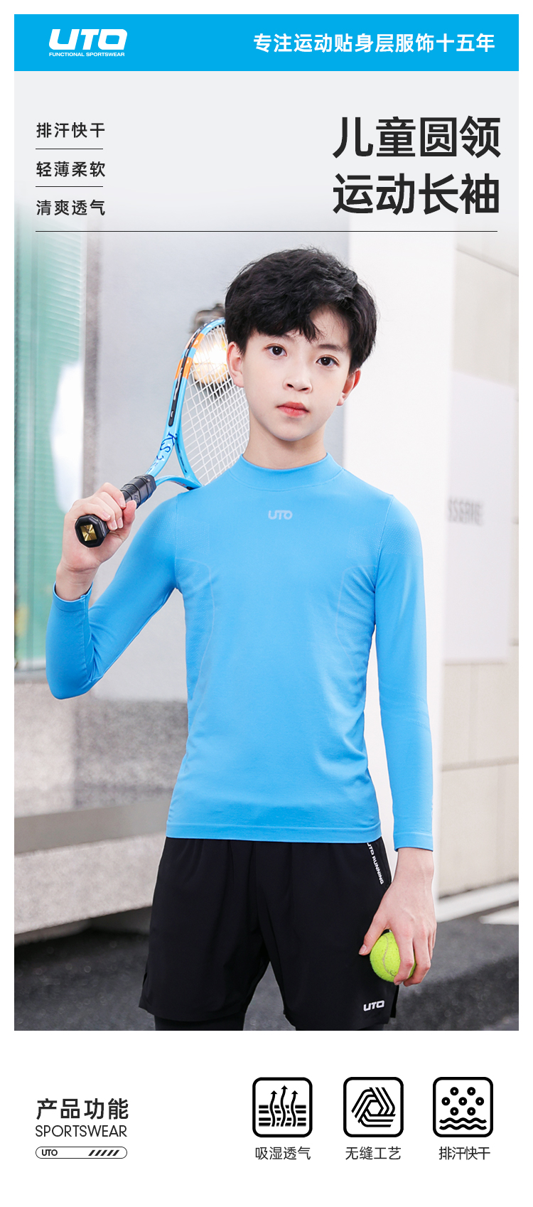 UTO/悠途儿童圆领紧身运动长袖高领户外跑步休闲长袖速干衣春秋