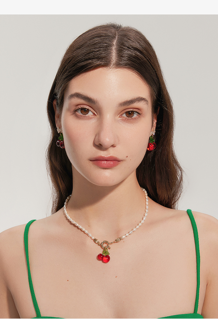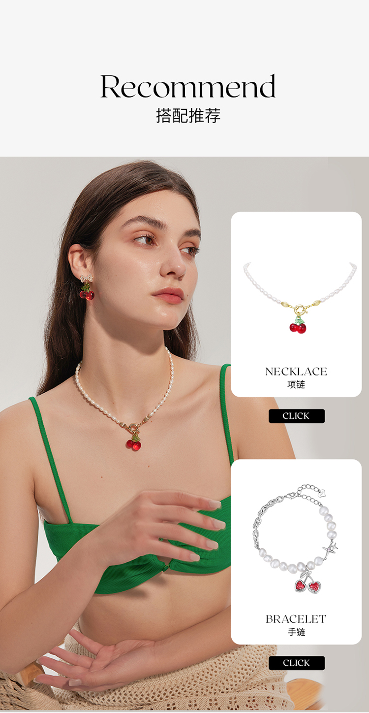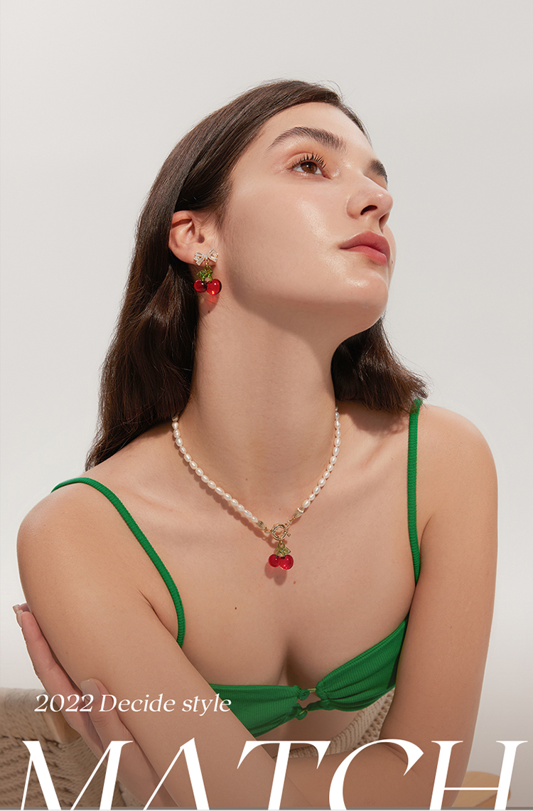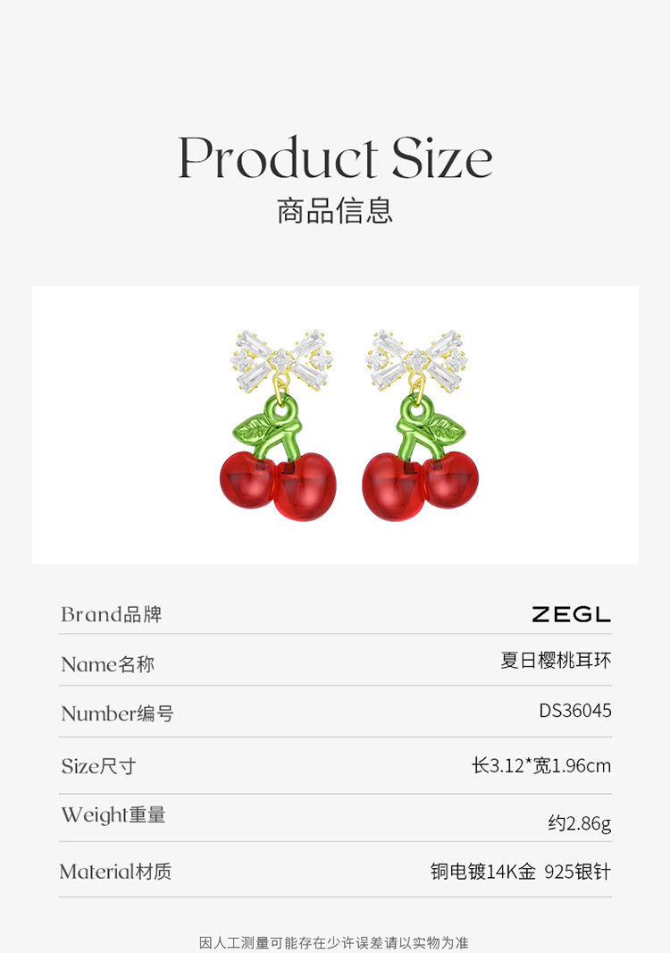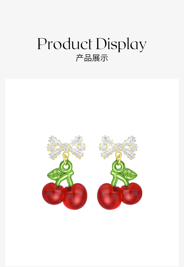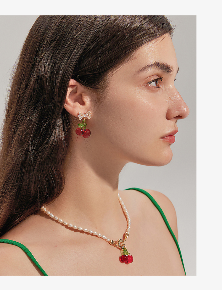 ZEGL蝴蝶结红色樱桃耳环女2022新款潮耳钉小众设计感高级银针耳饰