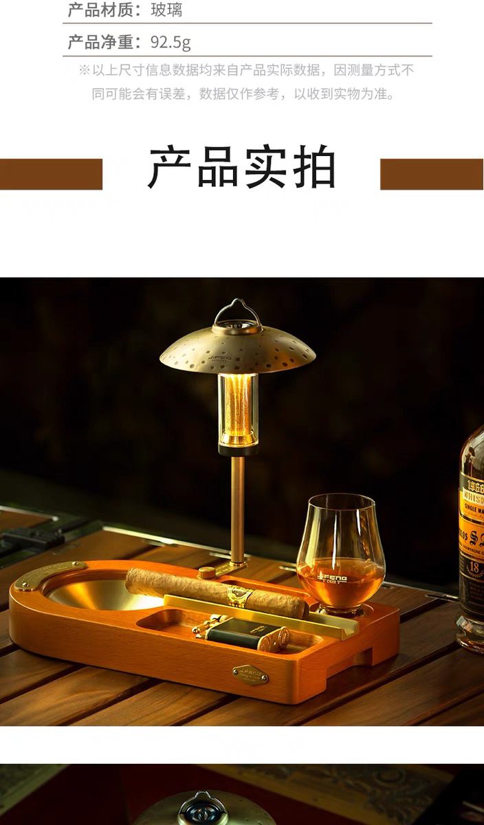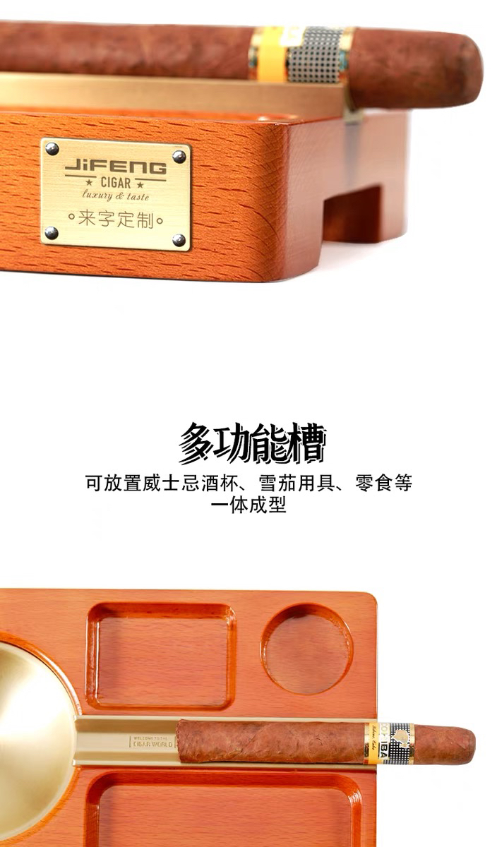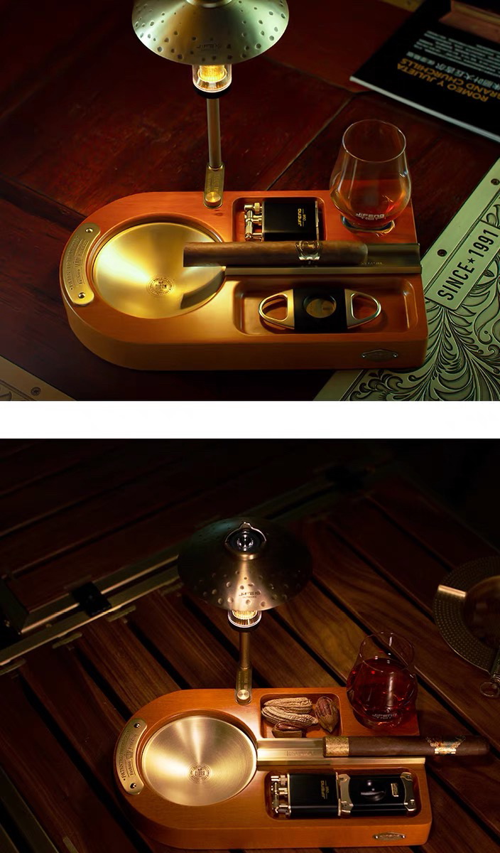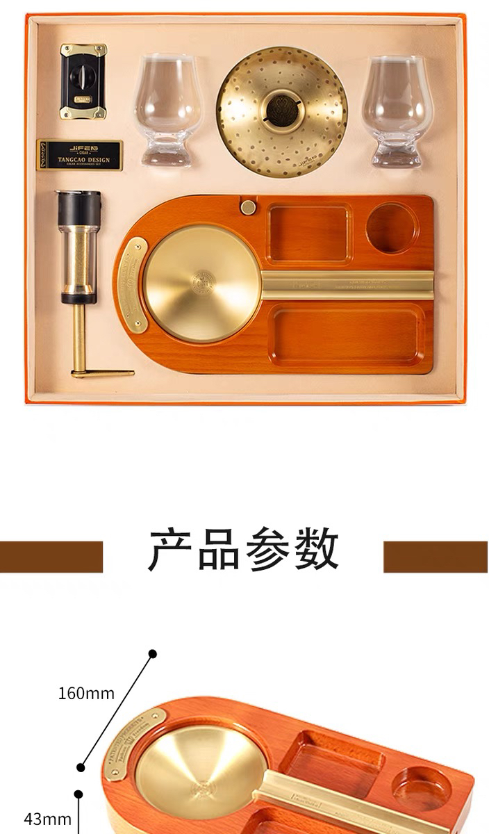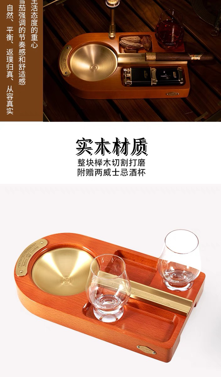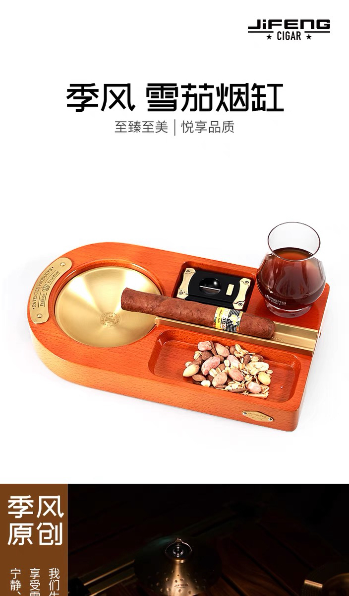 JIFENG季风威士忌杯雪茄剪打火机纯铜榉木实木雪茄烟灰缸套装