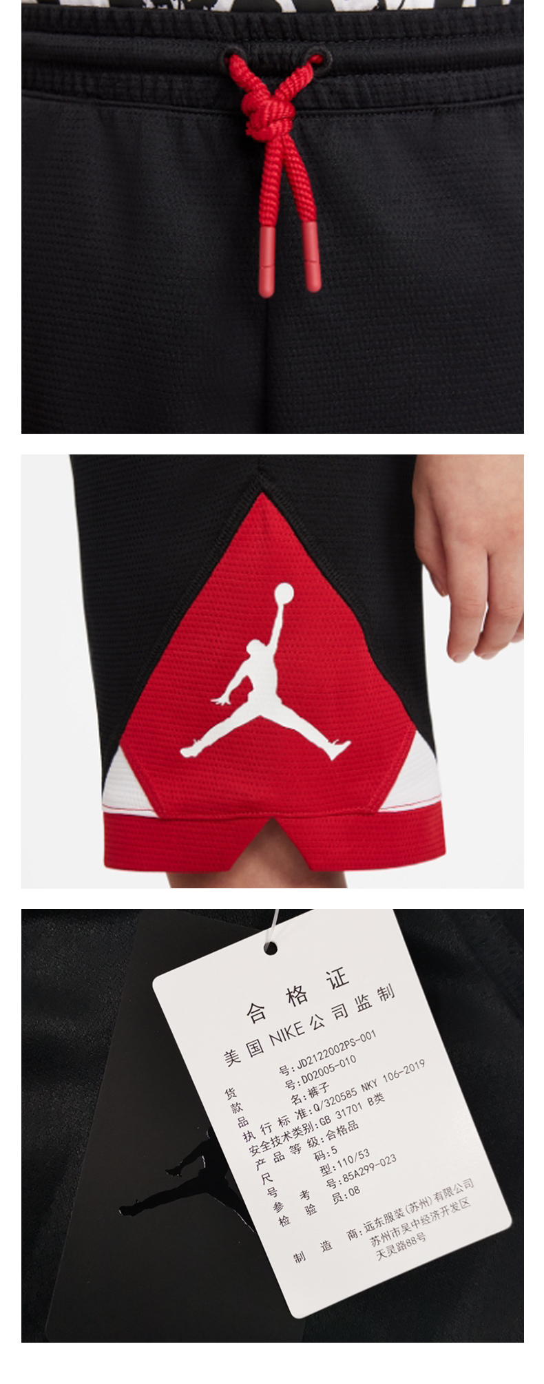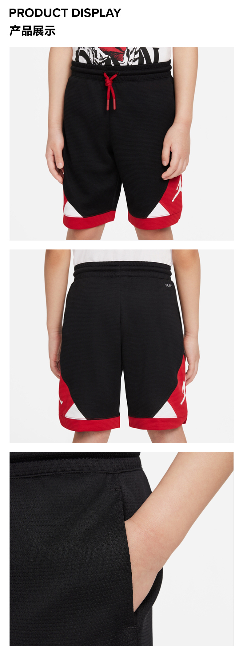 JORDAN童装 夏男童速干透气沙滩篮球服运动五分短裤JD