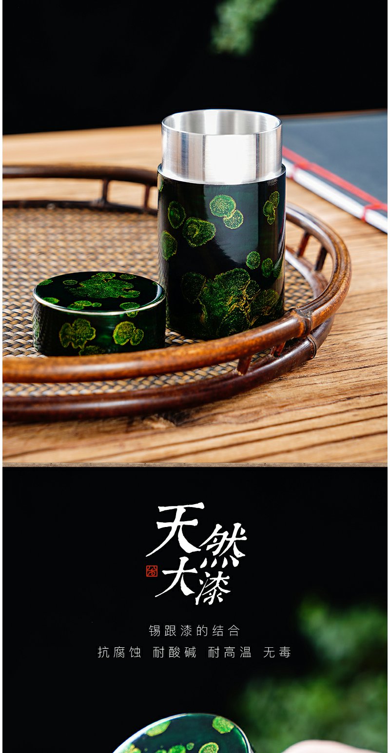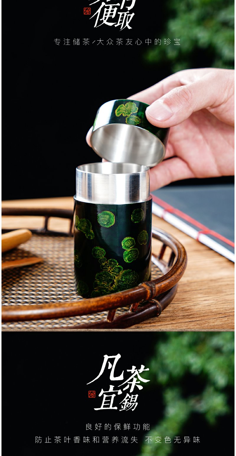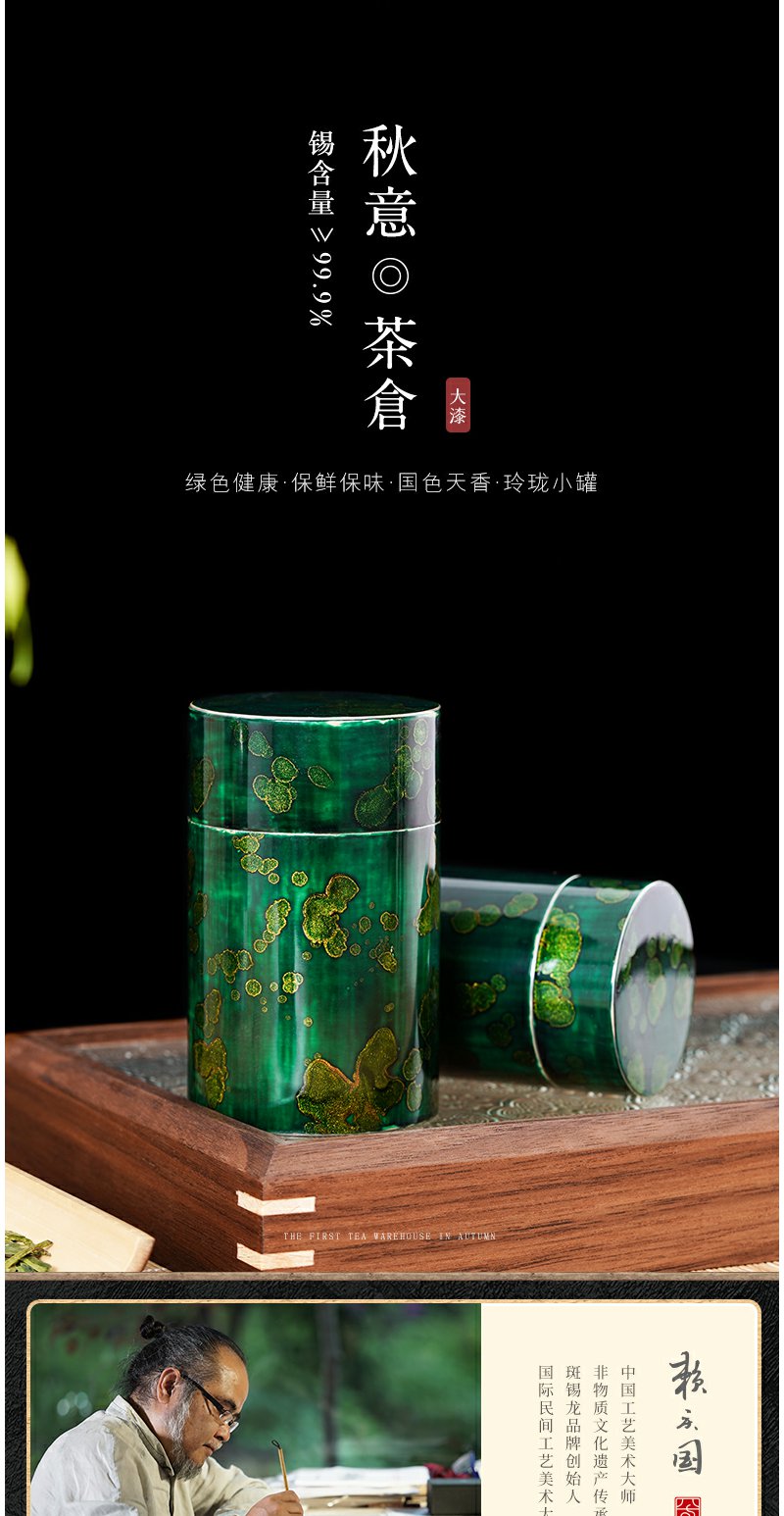 斑锡龙大漆锡罐茶叶罐便携小号秋意茶仓翡翠绿随身外出旅行装