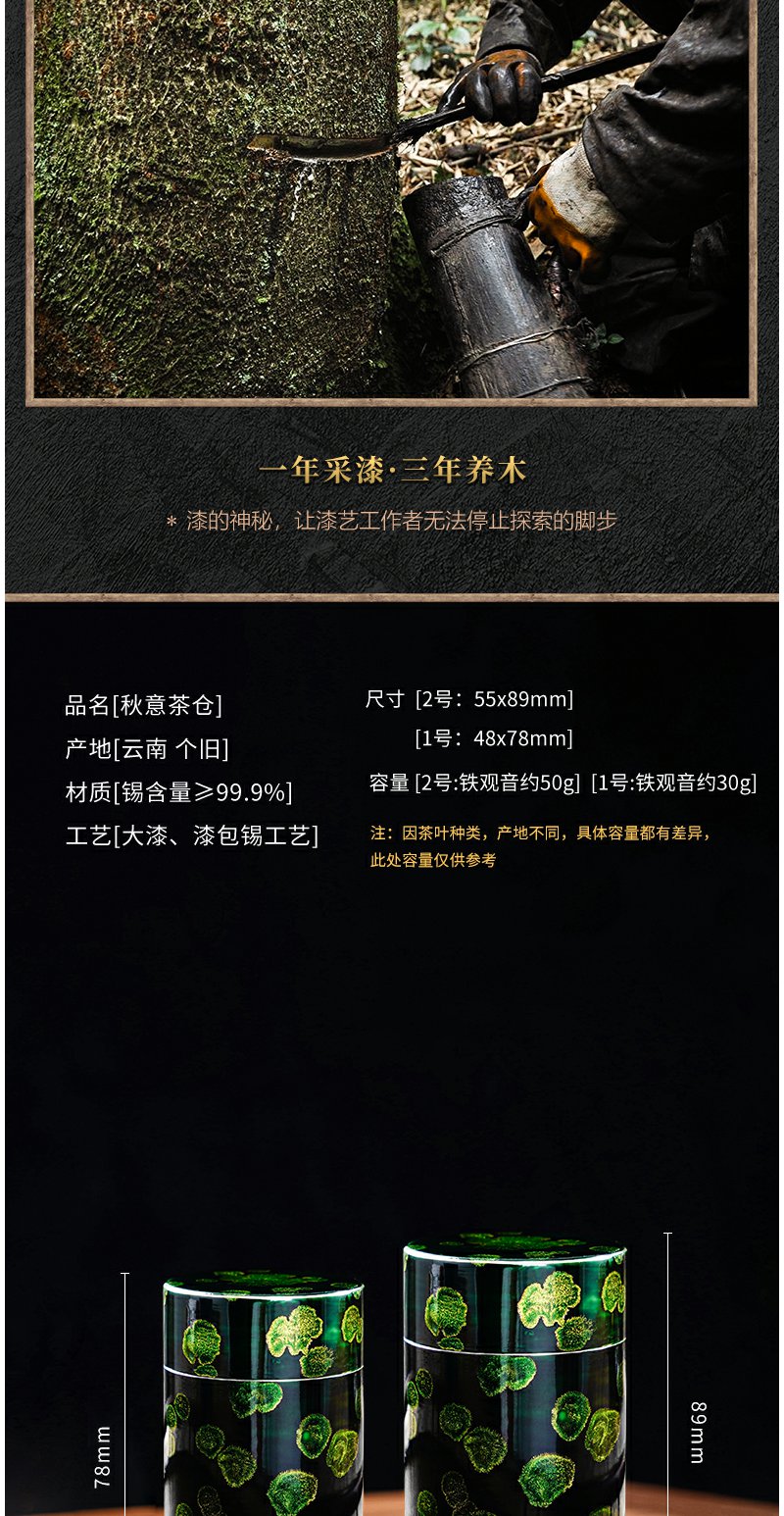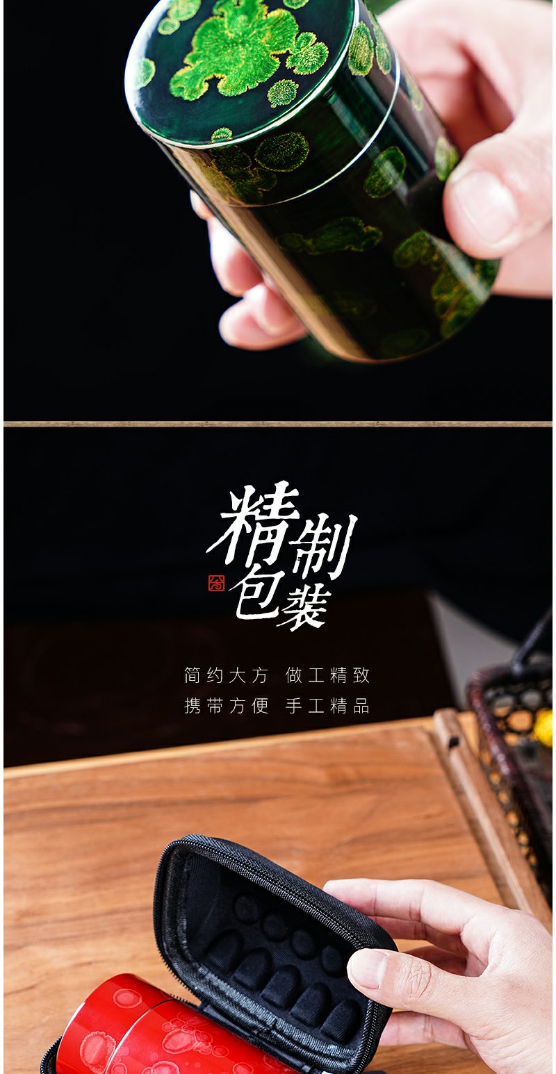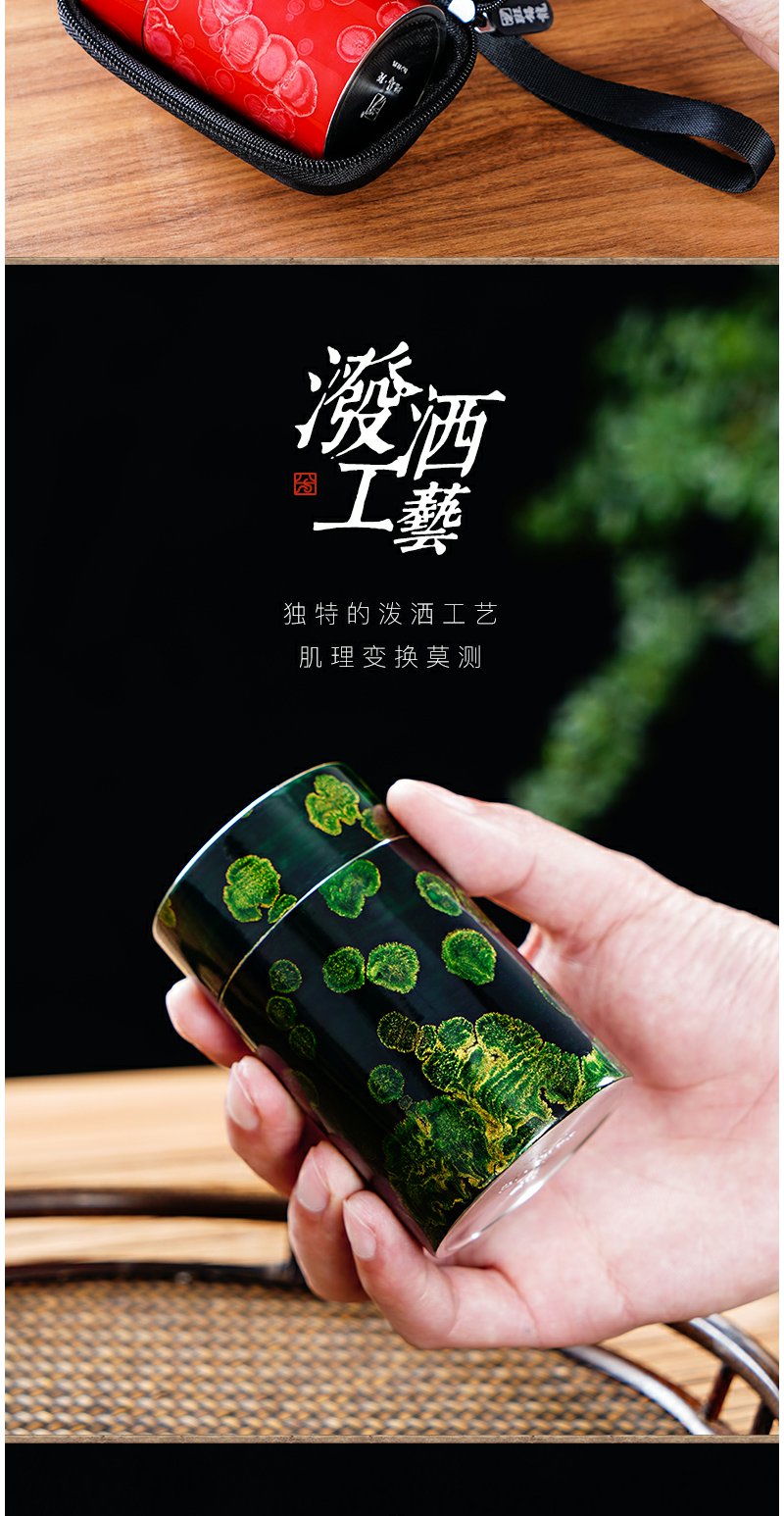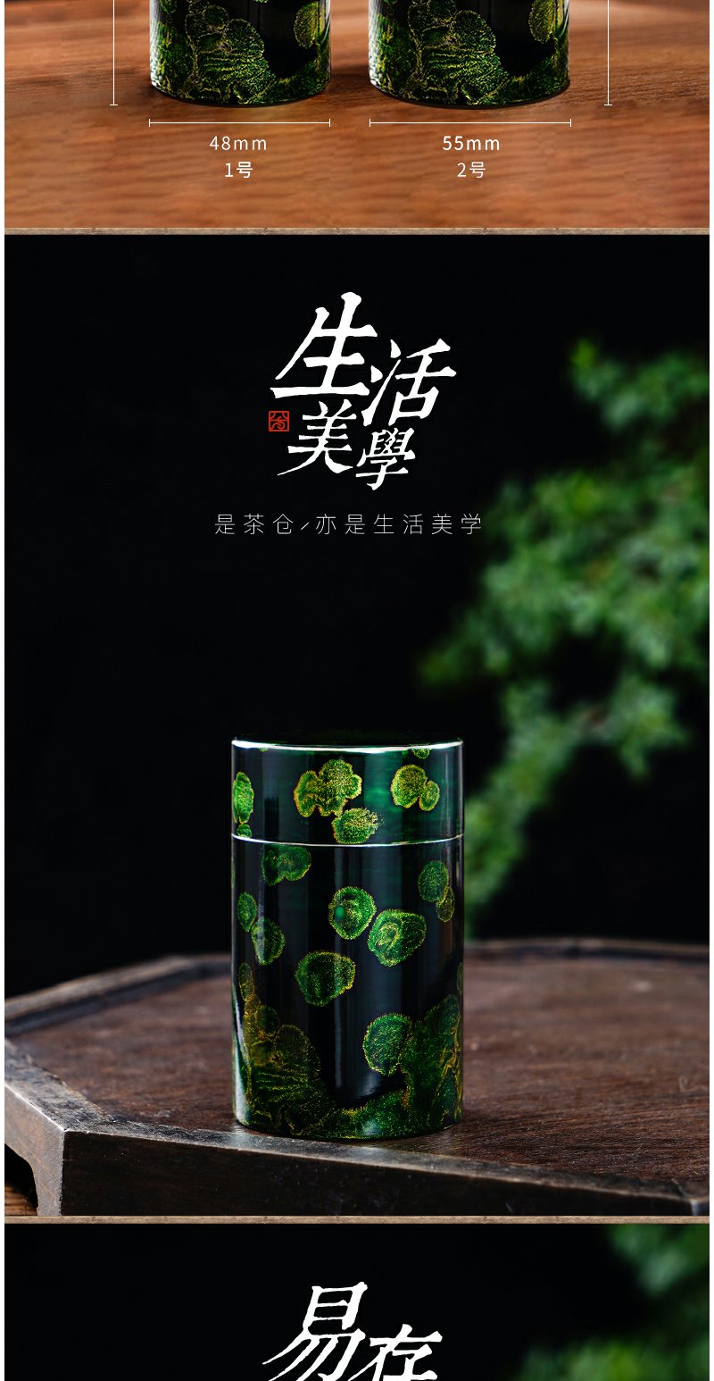 斑锡龙大漆锡罐茶叶罐便携小号秋意茶仓翡翠绿随身外出旅行装