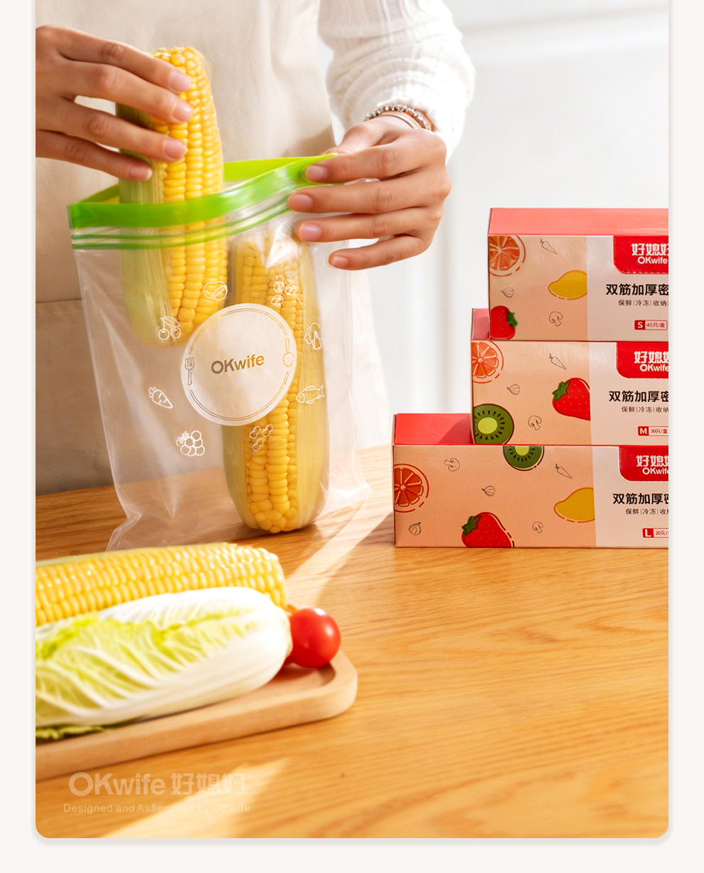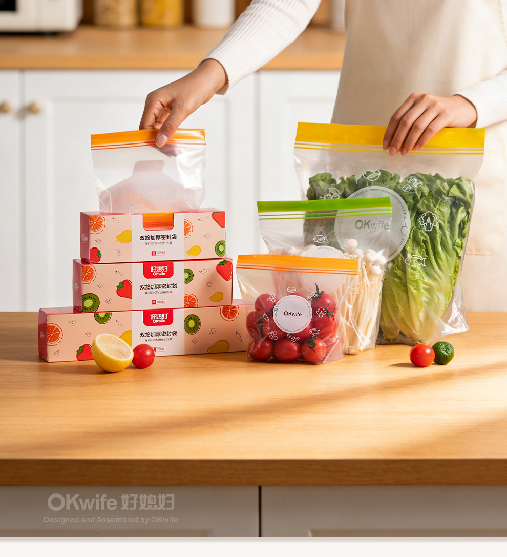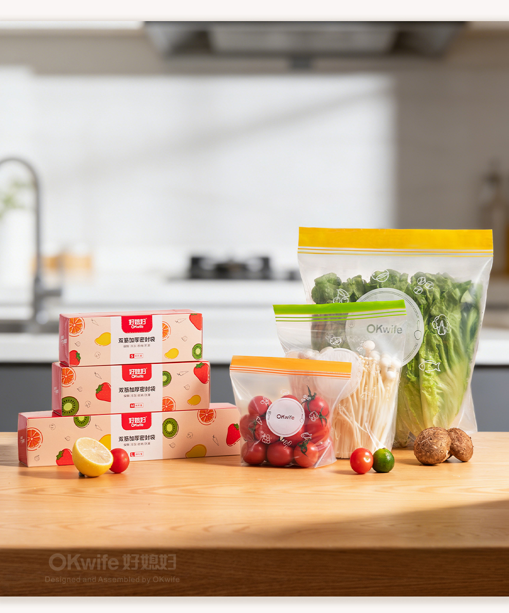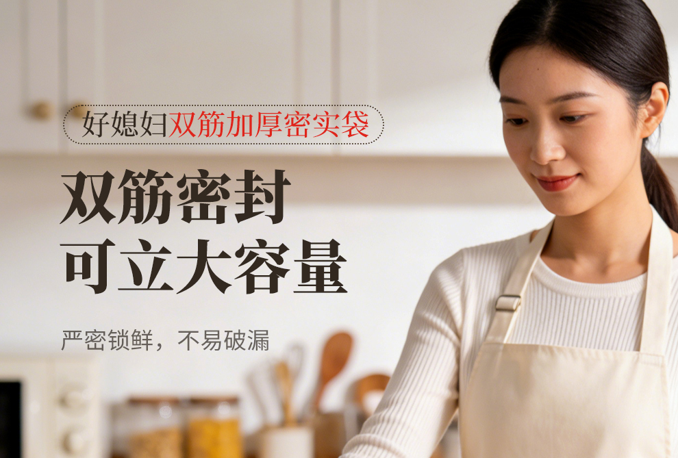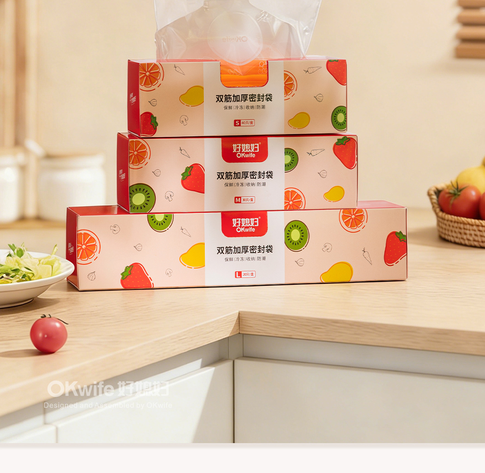 好媳妇保鲜袋食品级密封袋家用冰箱收纳冷藏专用熟料袋分袋带封口