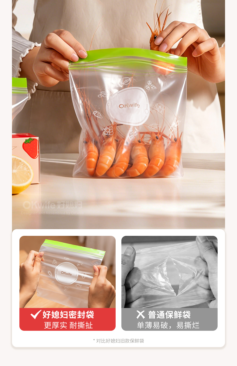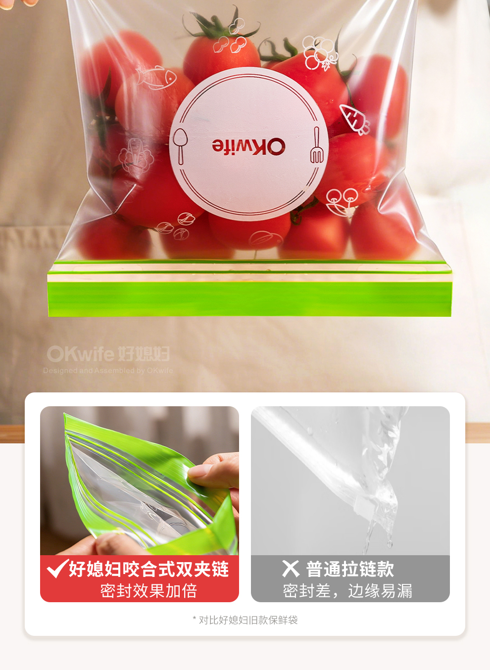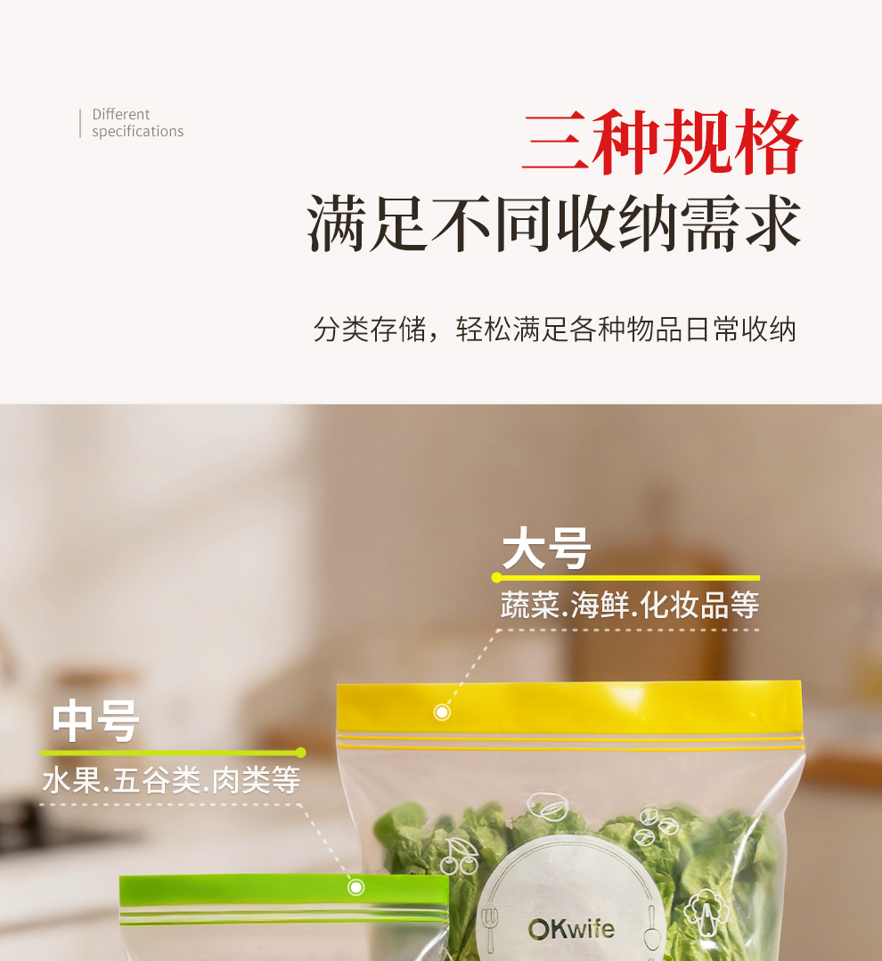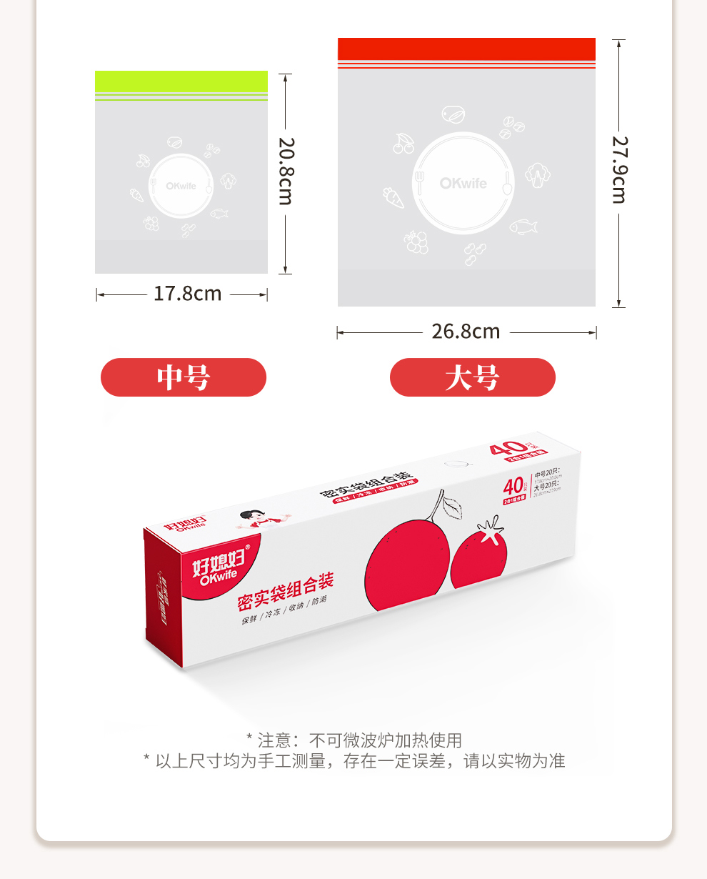 好媳妇保鲜袋食品级密封袋家用冰箱收纳冷藏专用熟料袋分袋带封口