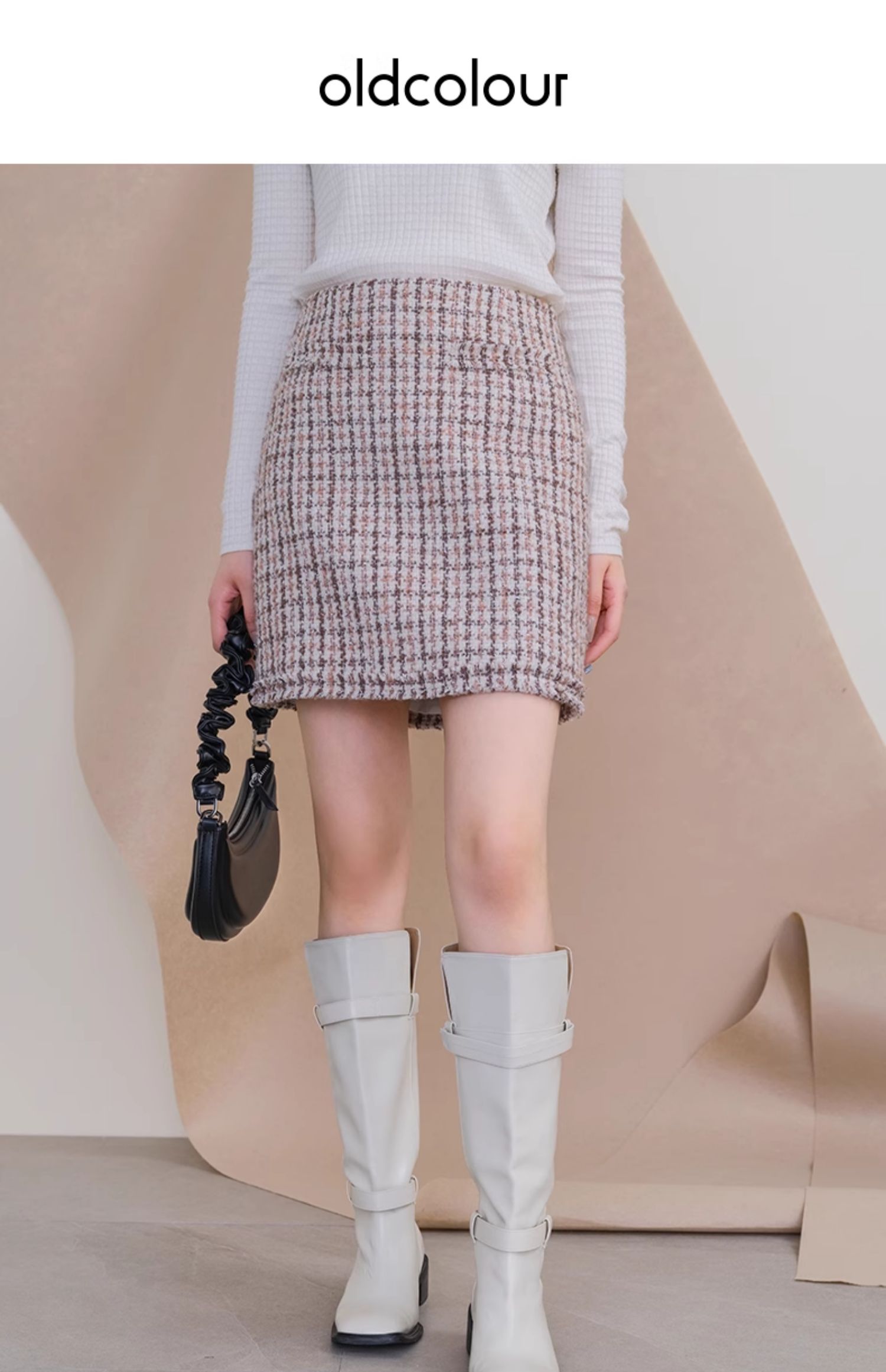 oldcolour欧珂冬季新款休闲时尚格子包臀裙短裙女P460601A1