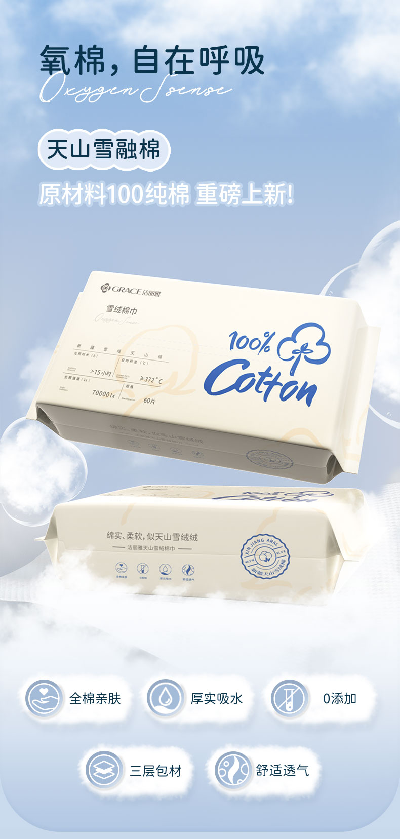 【天山雪绒棉】100%新疆全棉加厚一次性洗脸巾 60片包