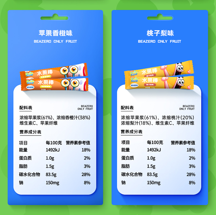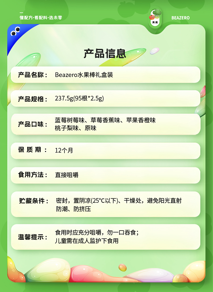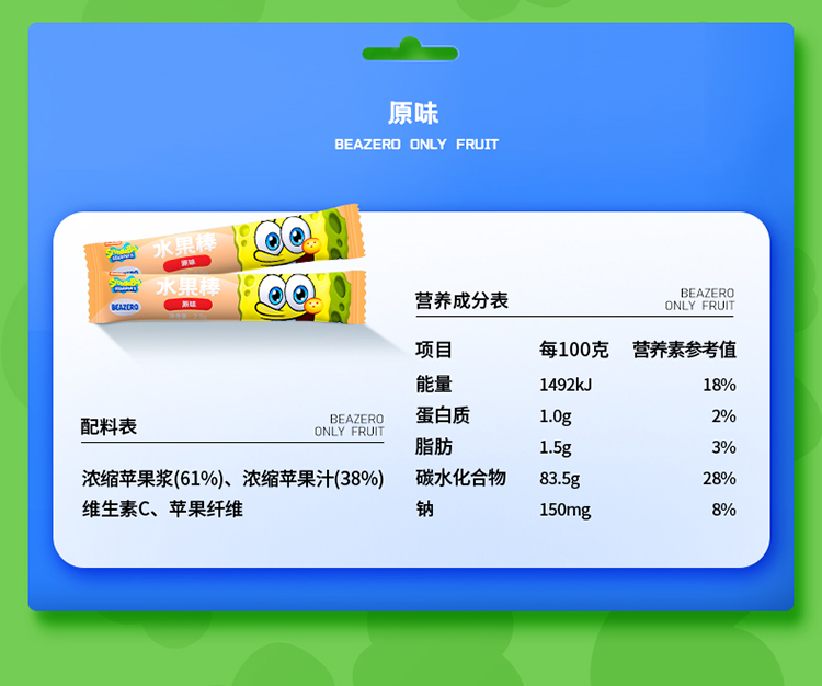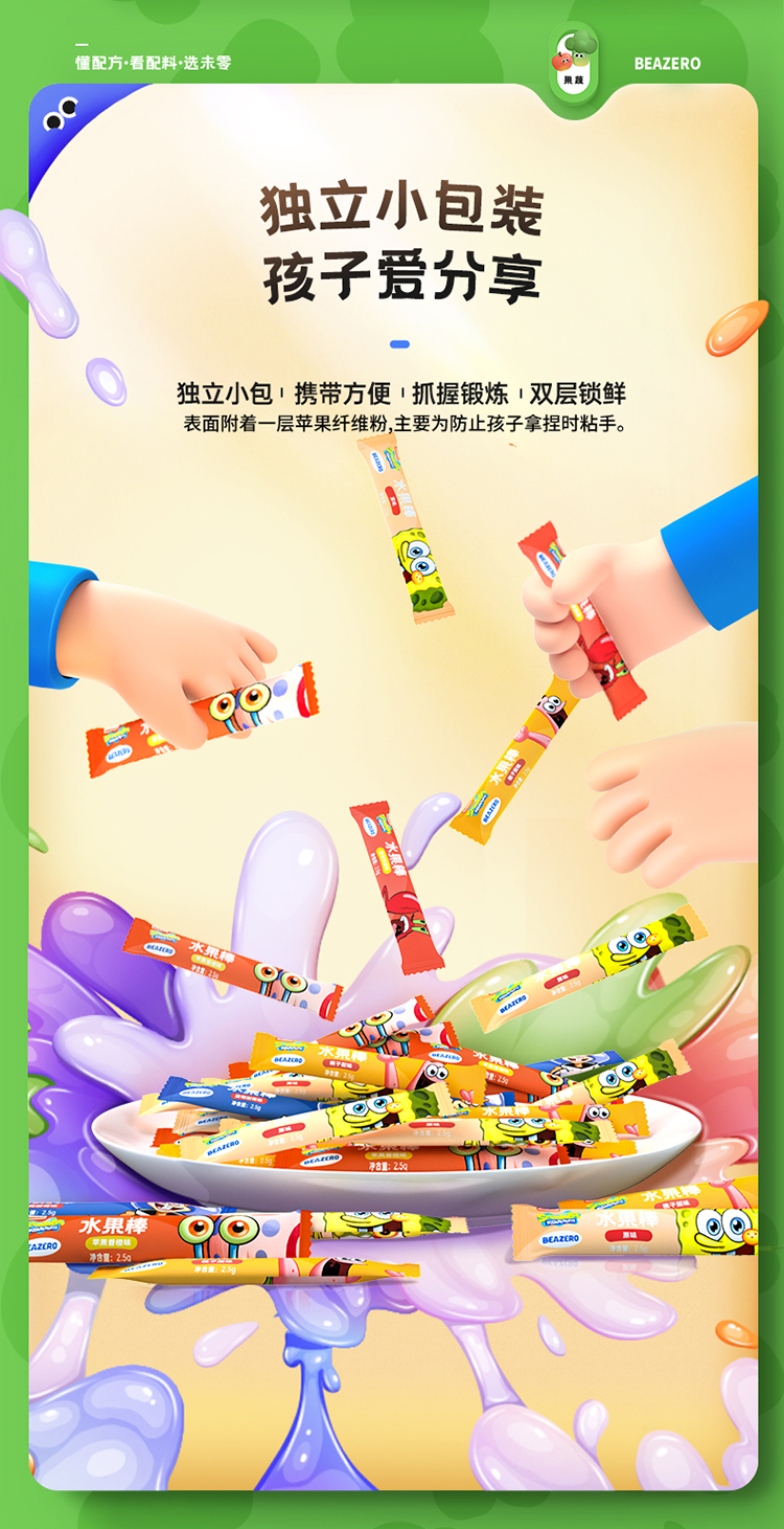 【双12】95根水果棒礼盒237.5g 营养水果条海绵宝宝零食果泥加赠各种周边产品