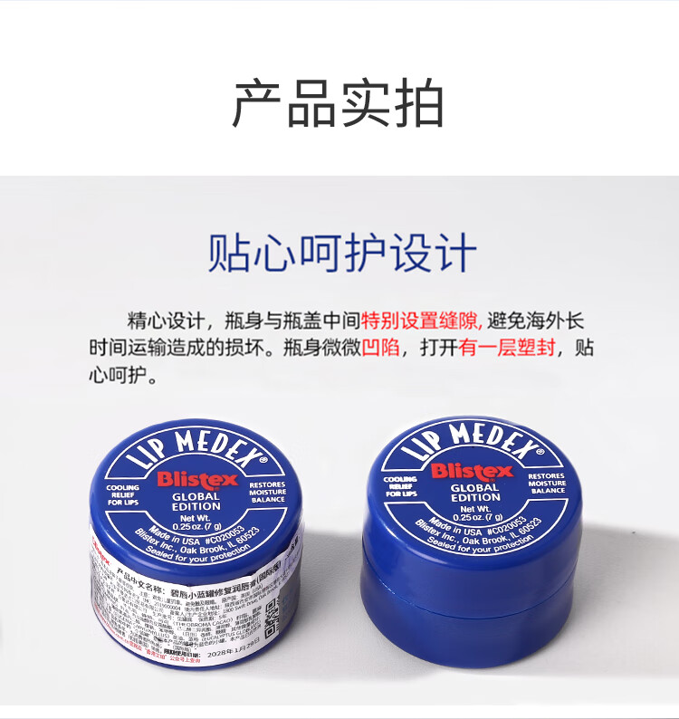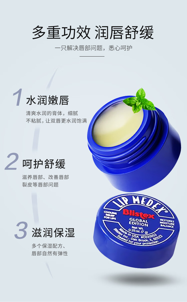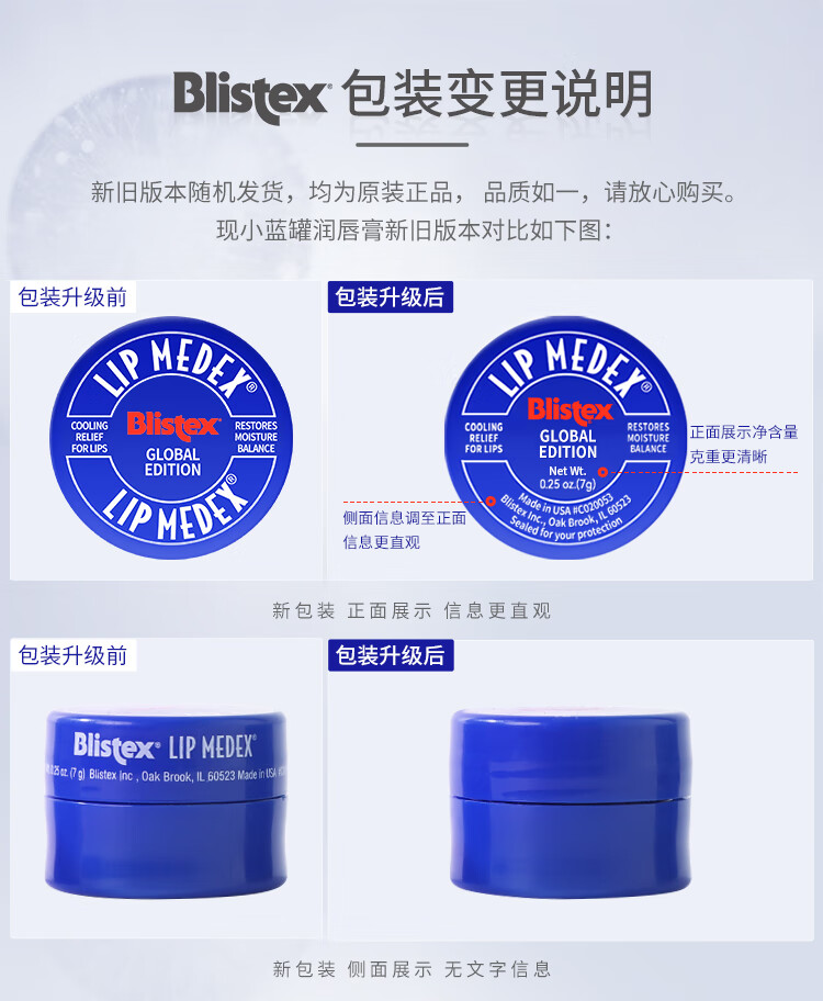 Blistex碧唇小蓝罐修复润唇膏7g国际版(修复干裂 保湿滋润修护 美国进口经典小蓝罐)