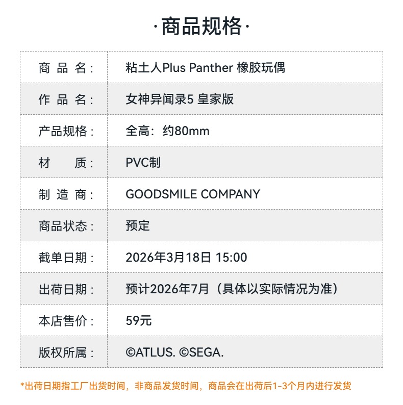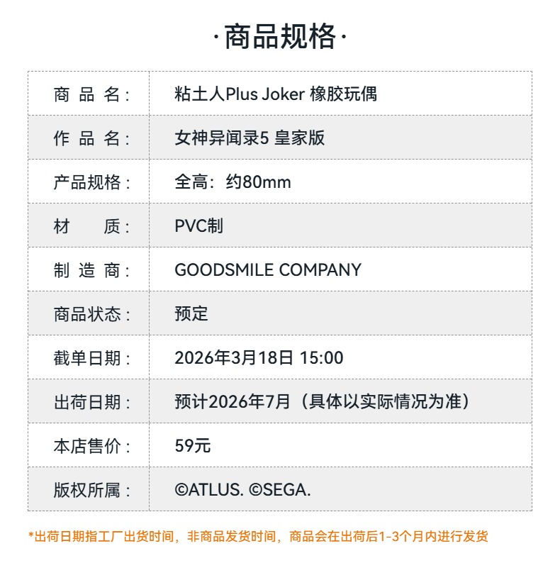 【GSC预售定金】粘土人Plus Joker/Panther/摩尔加纳 橡胶玩偶 女神异闻录5 皇家版