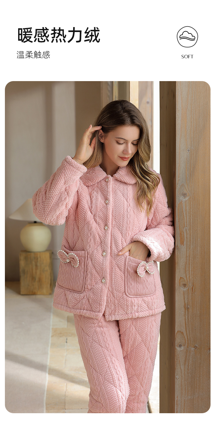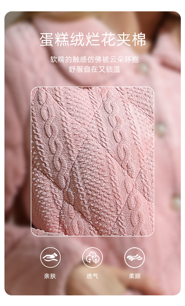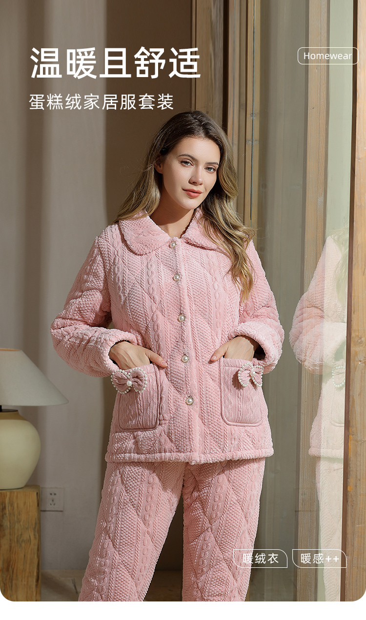 秋冬新品蛋糕绒烂花夹棉加厚款保暖柔软家居服睡衣JJT90036