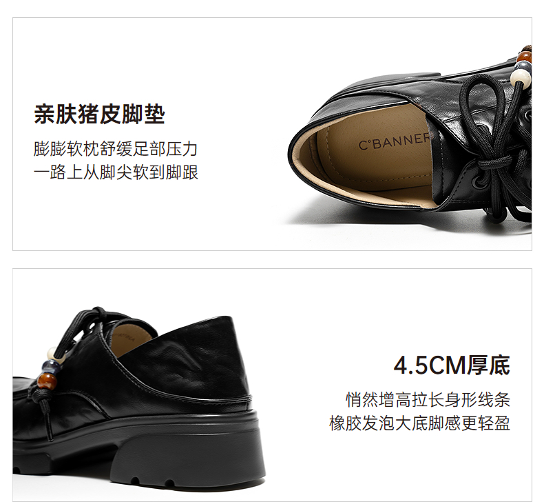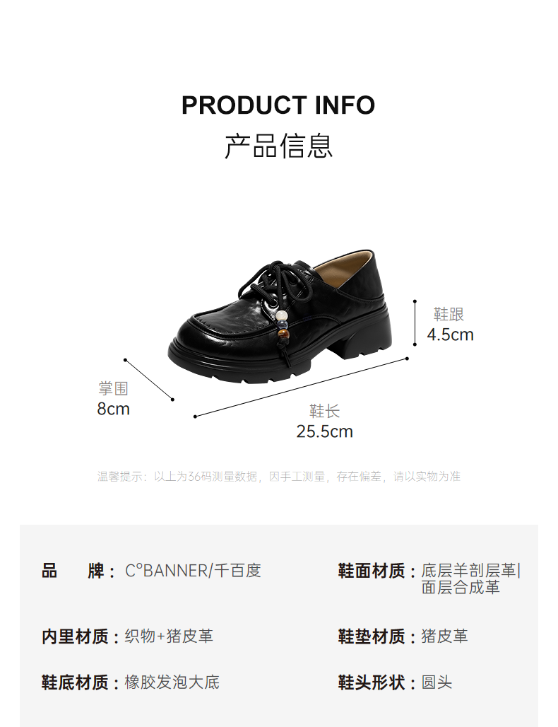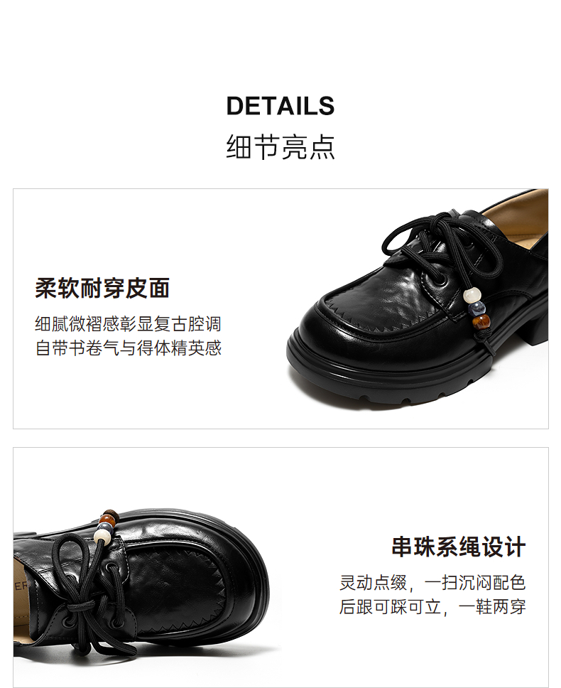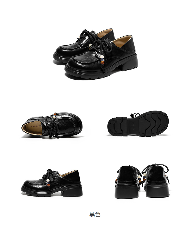 千百度串珠系绳厚底乐福鞋女2026春季新款JK小皮鞋增高深口单鞋A26158112