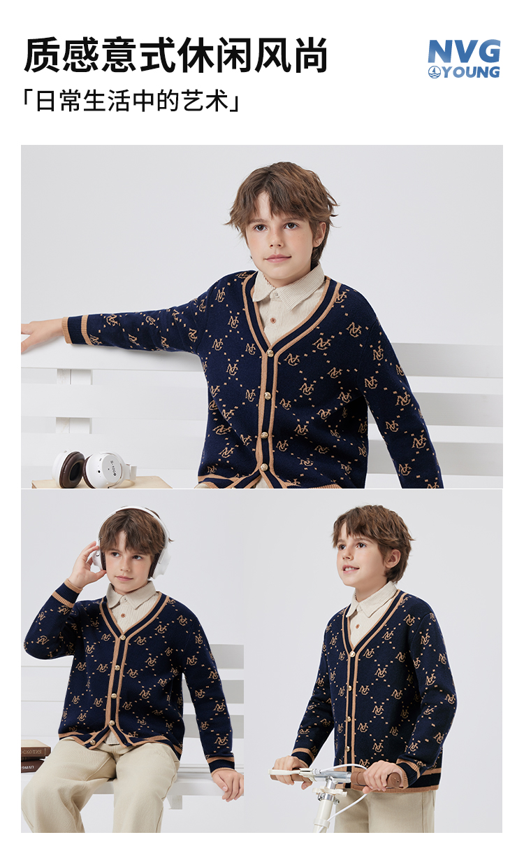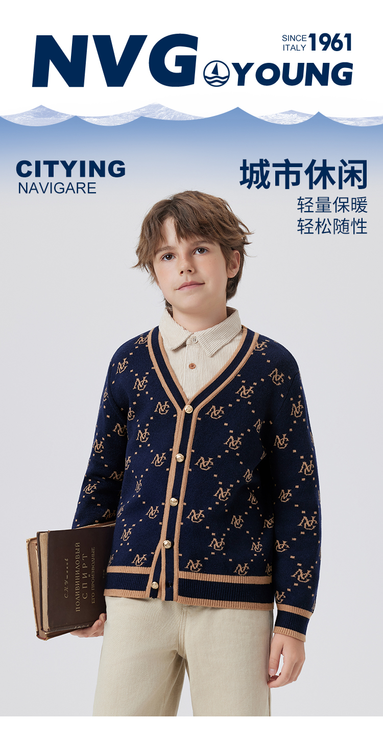 【纳维凯尔】【120-165】意大利小帆船男童针织开衫毛衣