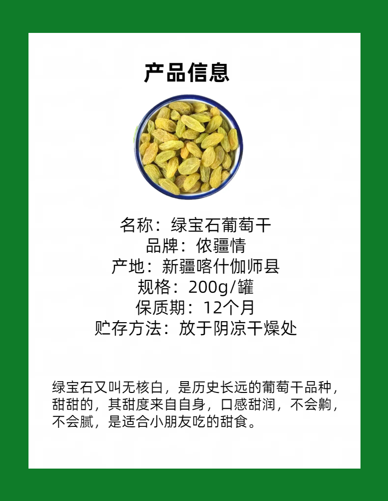 侬疆情新疆绿宝石葡萄干200g/罐【疆品南下 粤品北上】