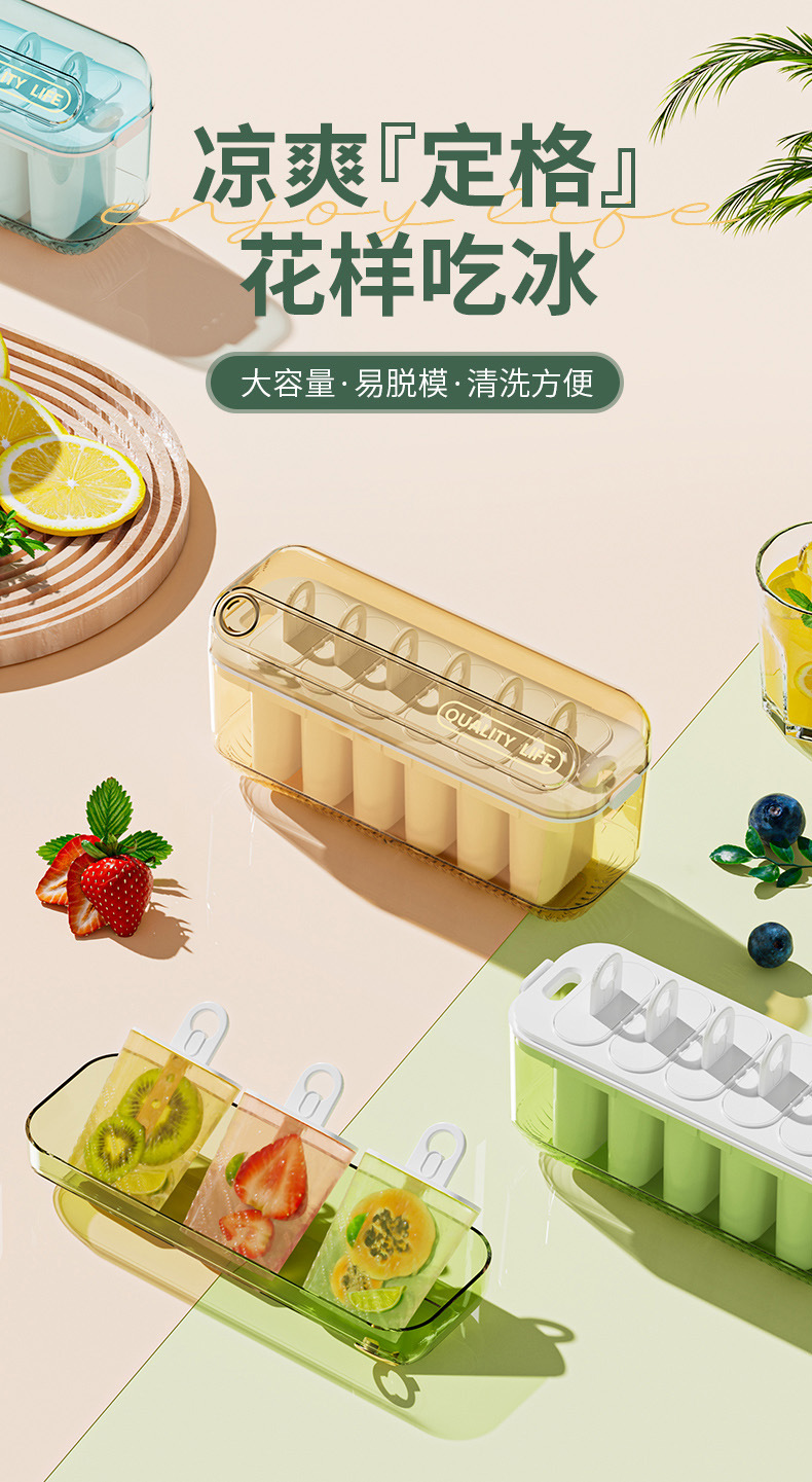 带盖冰格冰块膜具6格大容量家用自制冰棍冰棒冰淇淋模具雪糕模具
