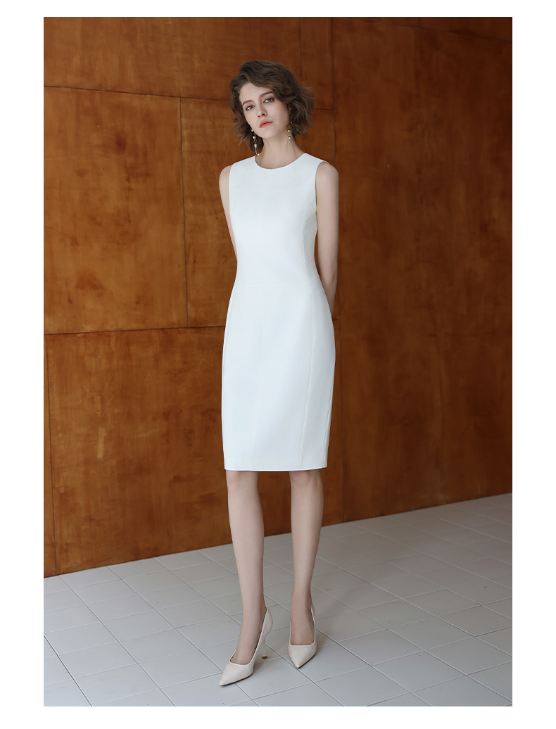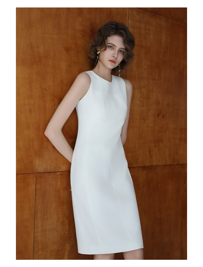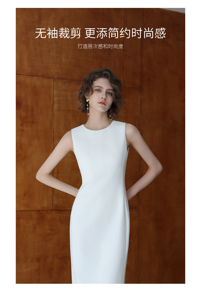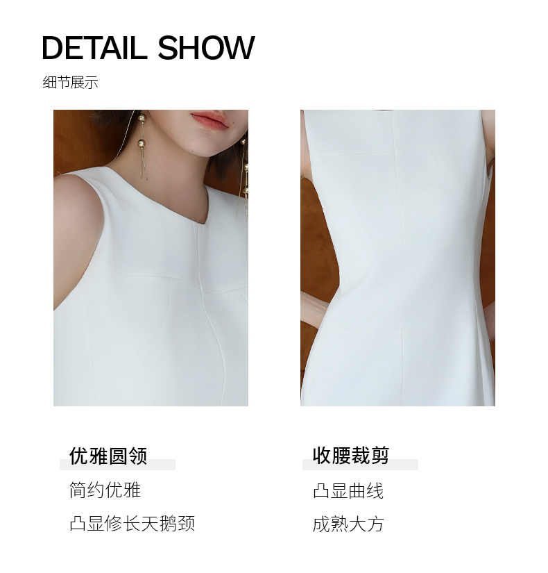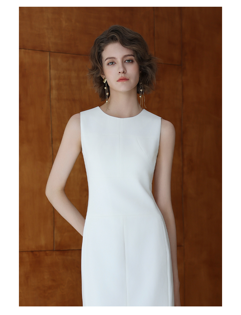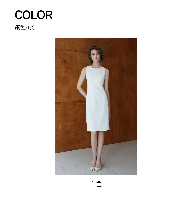 IWY/白色圆领无袖收腰显瘦连衣裙法式轻奢高级设计感百搭背心裙女Q14259