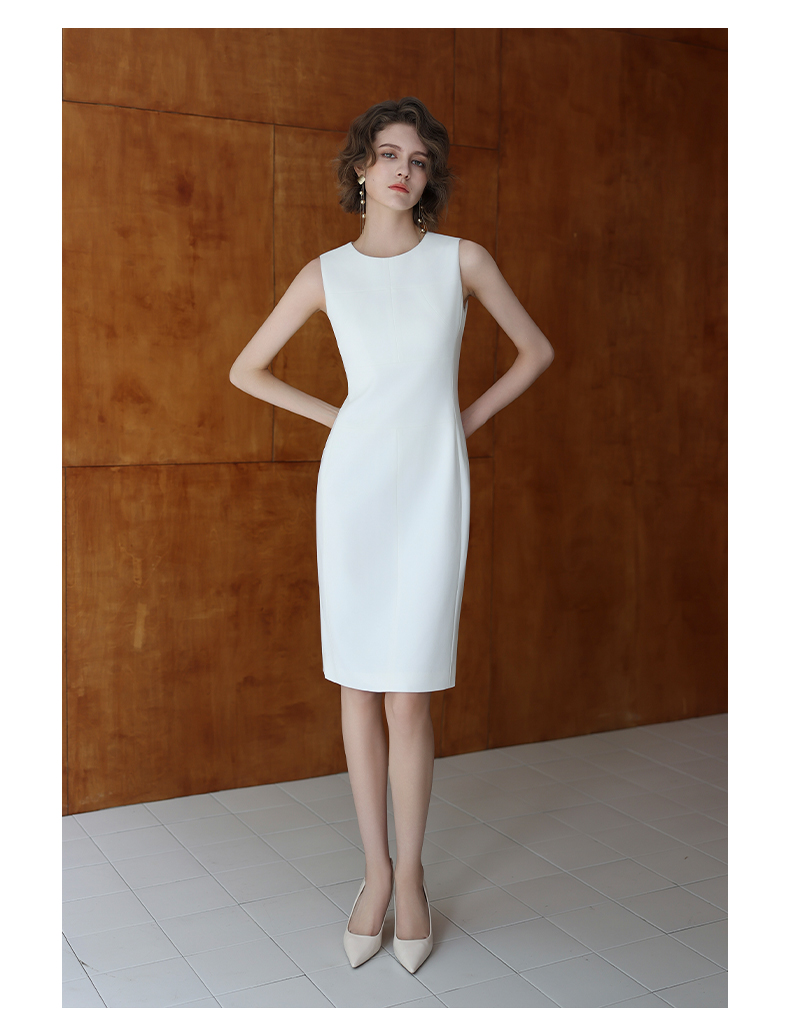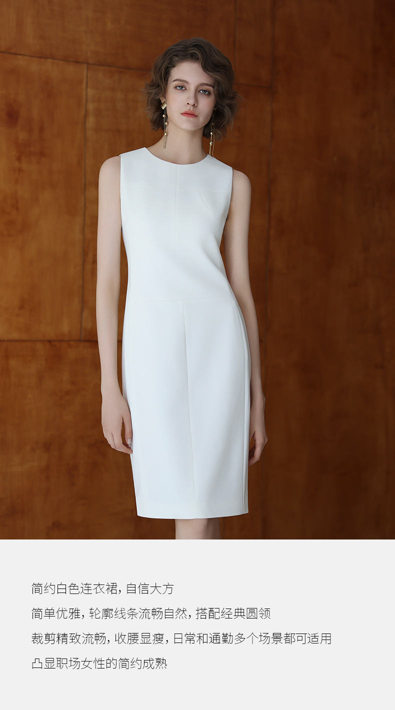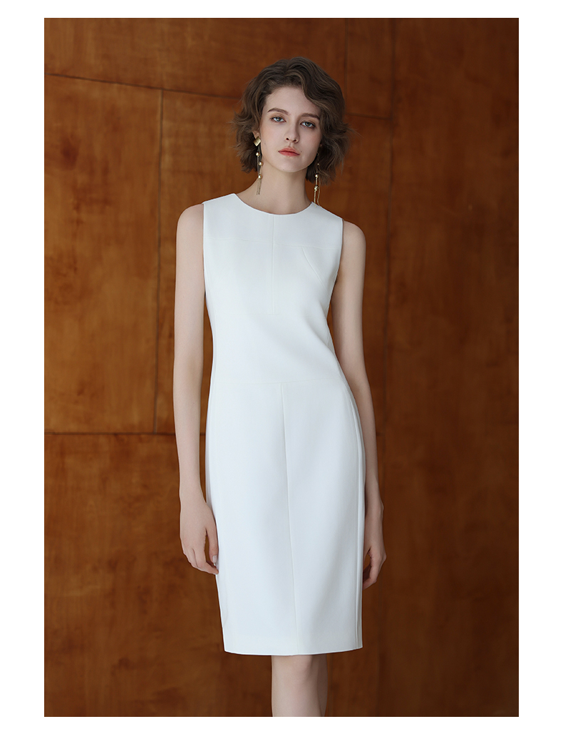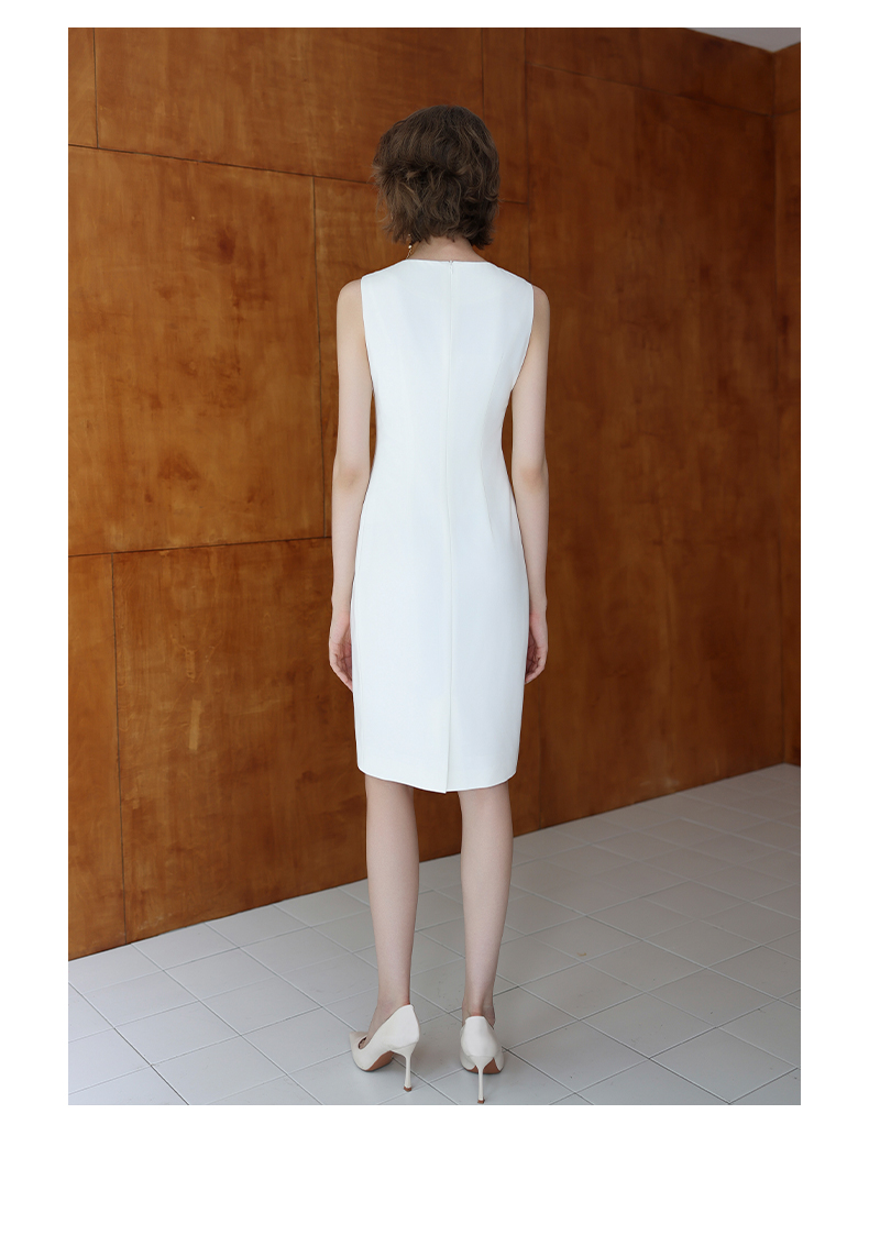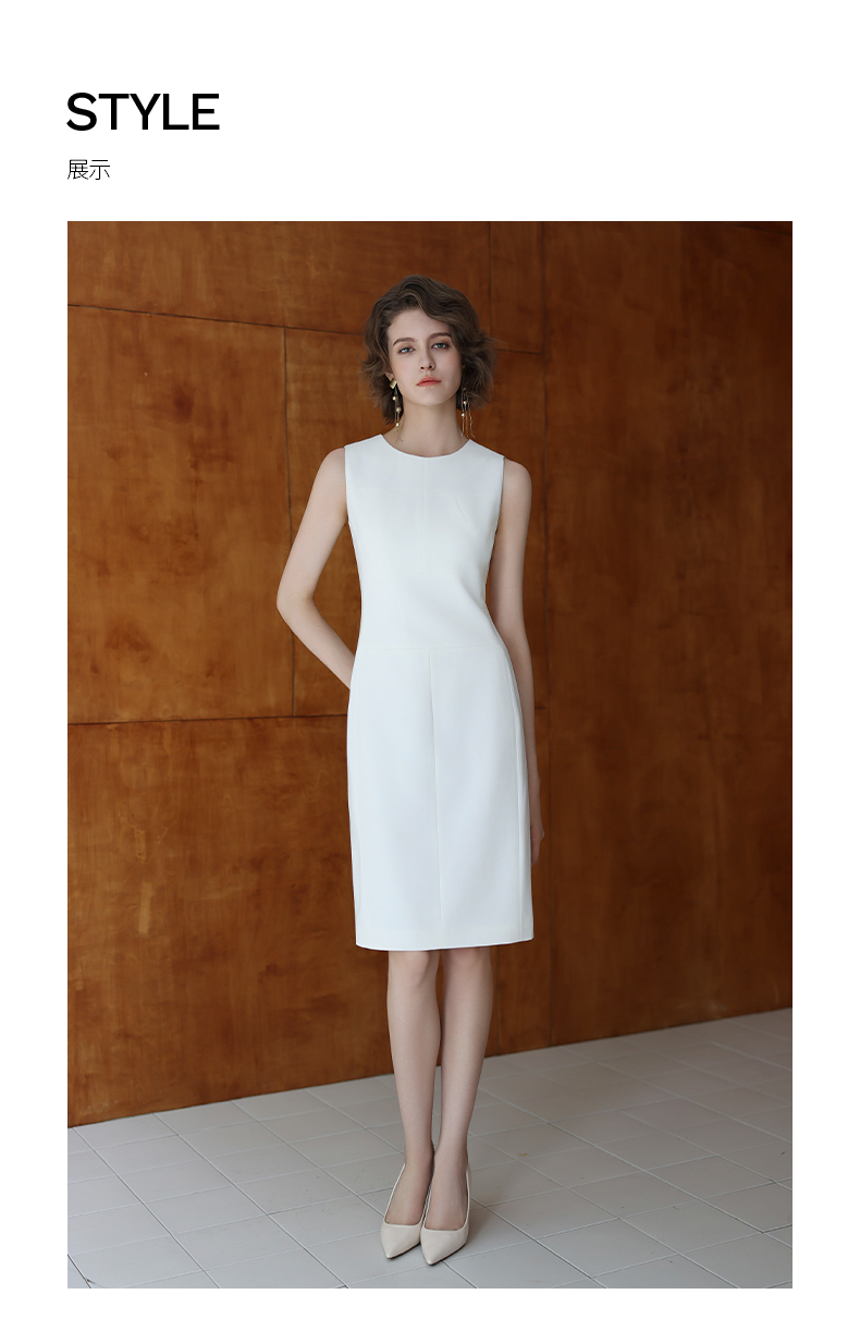 IWY/白色圆领无袖收腰显瘦连衣裙法式轻奢高级设计感百搭背心裙女Q14259