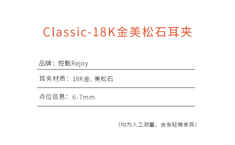【天猫同款】Classic-18k金美松石耳夹 6-7mm