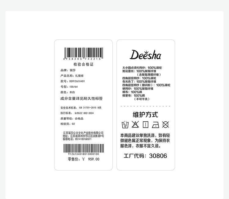笛莎Deesha 童装女童连衣裙2026春新款网纱礼服连衣裙