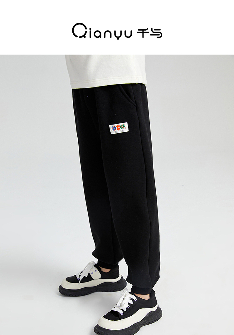 笛莎千与男童2024冬季新款男童基础休闲加绒针织长裤