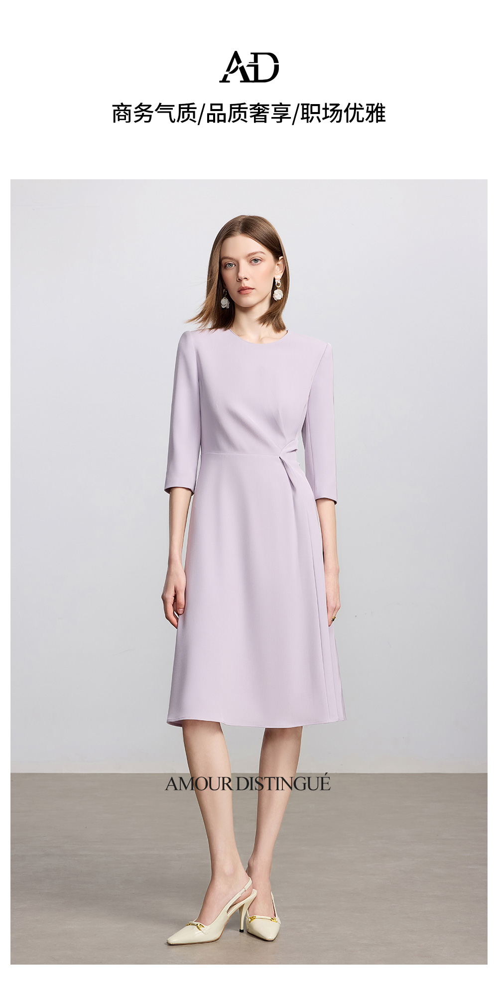 IWY/浪漫紫色连衣裙春季新款收腰显瘦a字裙高端医美工作服Q1432