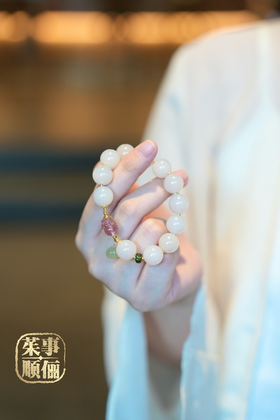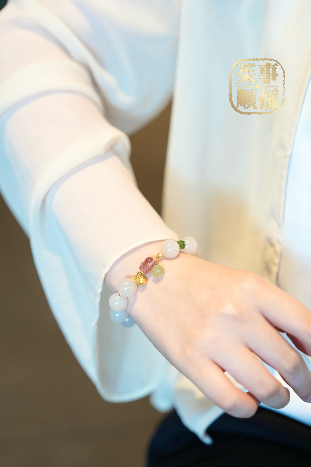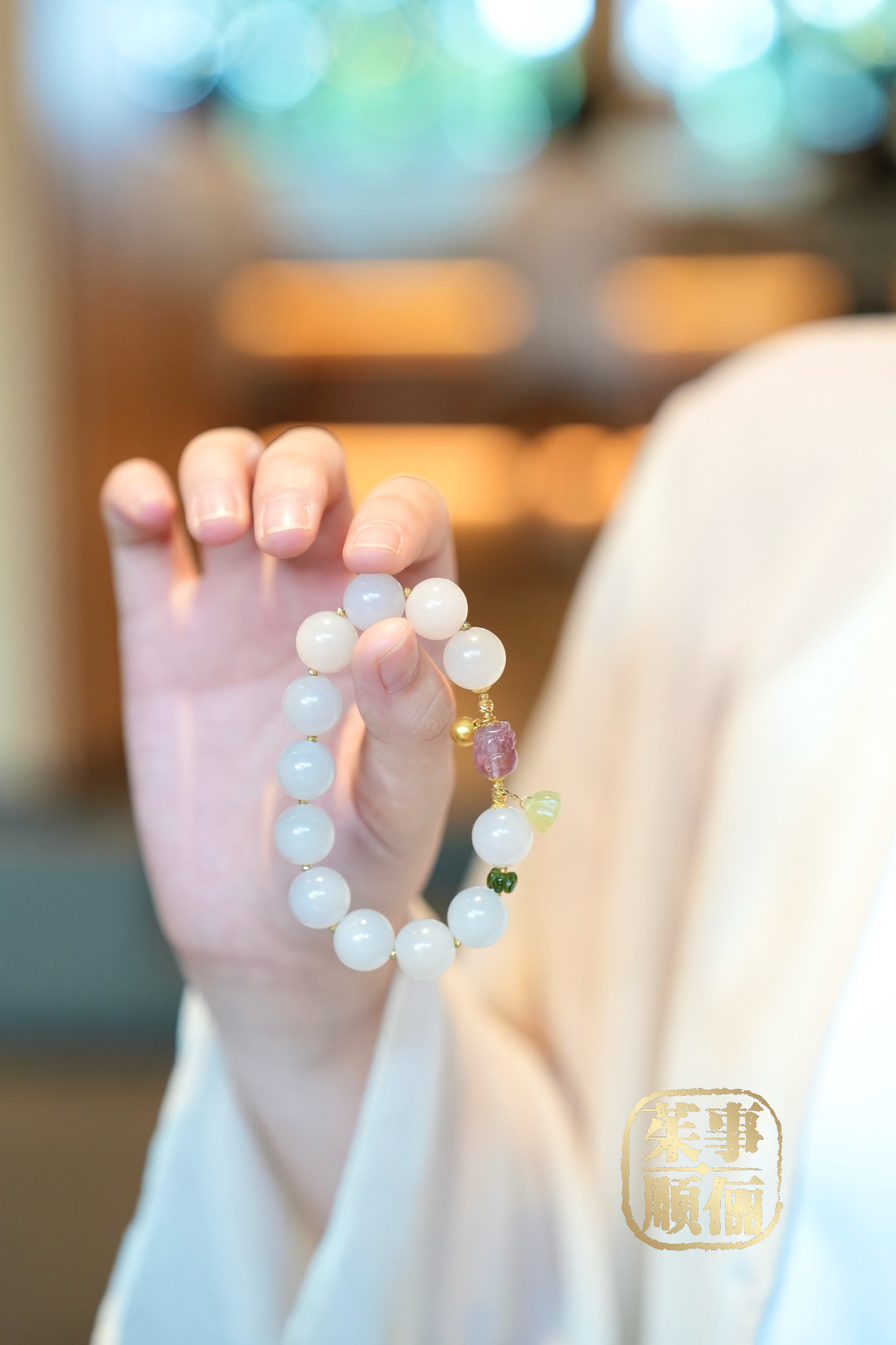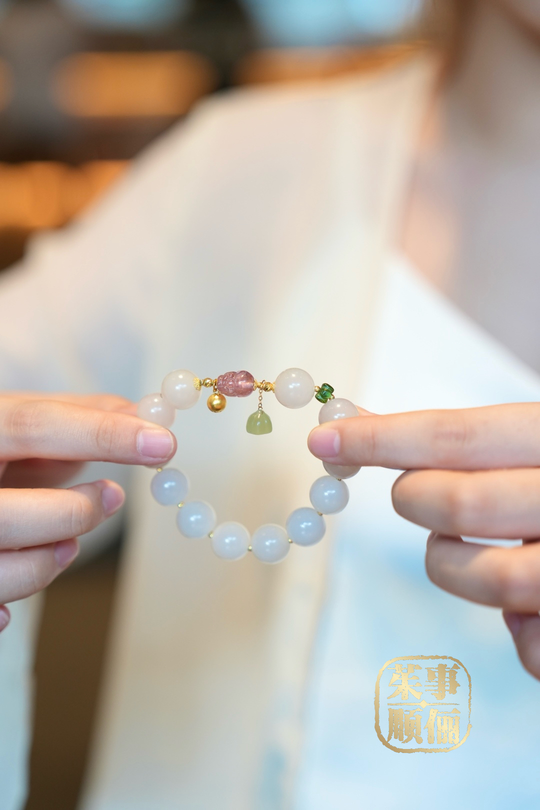 【茱事顺俪】18k黄金和碧玺田玉藕粉手链