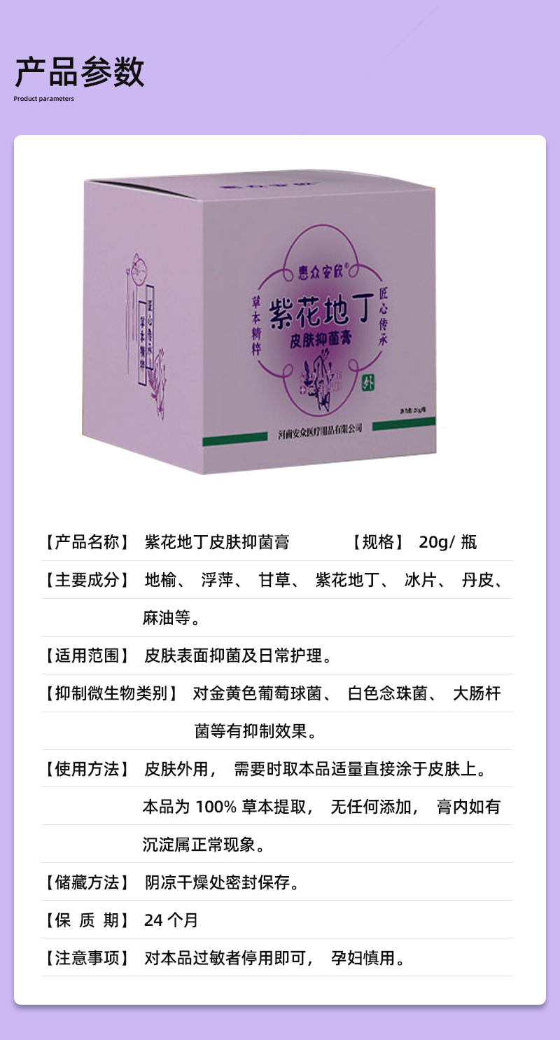 【紫花地丁皮肤抑菌膏】 20g/盒