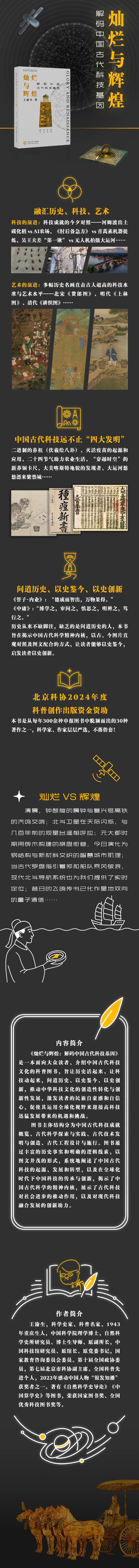 《灿烂与辉煌:解码中国古代科技基因》是一本面向大众读者、介绍中国古代科技文化的科普图书,旨让历史活起来、让科技动起来,问道历史、以史鉴今、以史创新,推动中华科技文化的创造性转化与创新性发展,激发读者的民族自豪感和自信心,促使其运用全球化视野来迎接高科技迅猛发展带来的机遇和挑战。图书主体结构分为中国古代科技成就概览、古代科学探索与实践、古代技术发明与创造、古代工程设计与施行。图书通过丰富的历史事实和明确的逻辑线索,以图文并茂的形式,系统地阐述了中国古代科技的起源、发展和转型,以及在全球化时代下中国科技的传承与创新,揭示了中国古代科学的精神内核,展示了古代科技对社会进步的推动作用,以及对现代科技融合发展的创新助力。