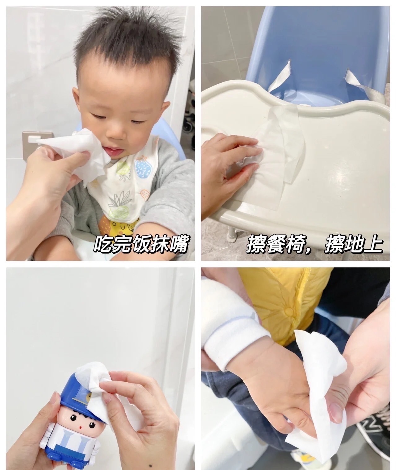 适用各种场景,可以入口清洁宝宝口腔 在爸妈眼里,湿巾是神器一般的存在 睡个午觉 擦擦手脚😀 穿个棉布 擦屁股 喝个奶水 嘴边黏黏 出去游玩 小手脏脏 这些样样都离不开湿巾🥰