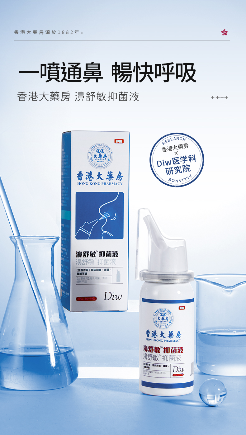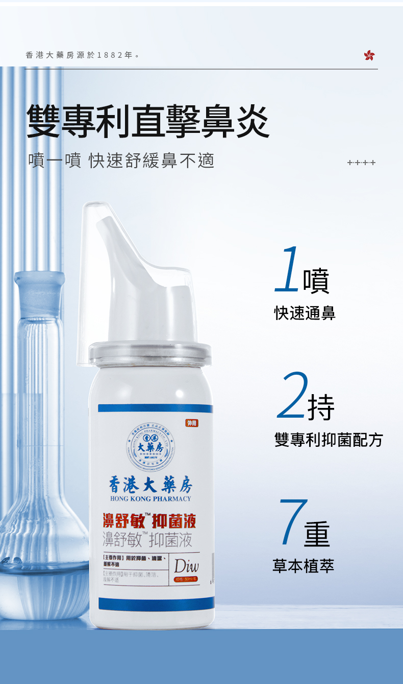 【买多送多】香港大药房鼻炎喷雾 温润通鼻、深层清洁、缓解因过敏性鼻炎引发的相关症状、不刺激 50ml/瓶