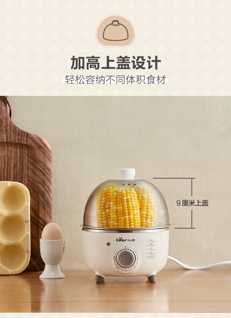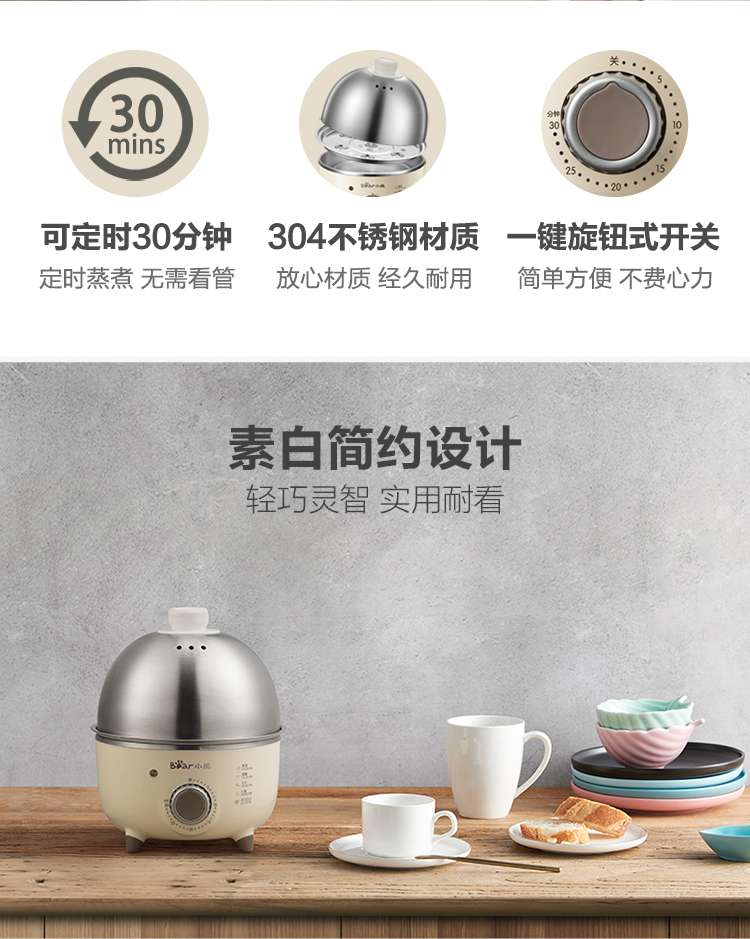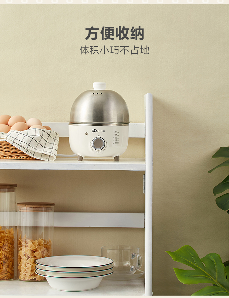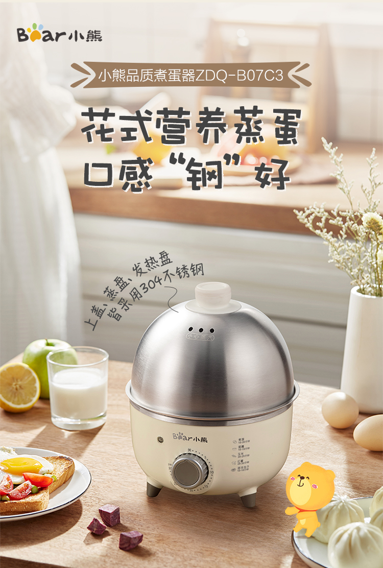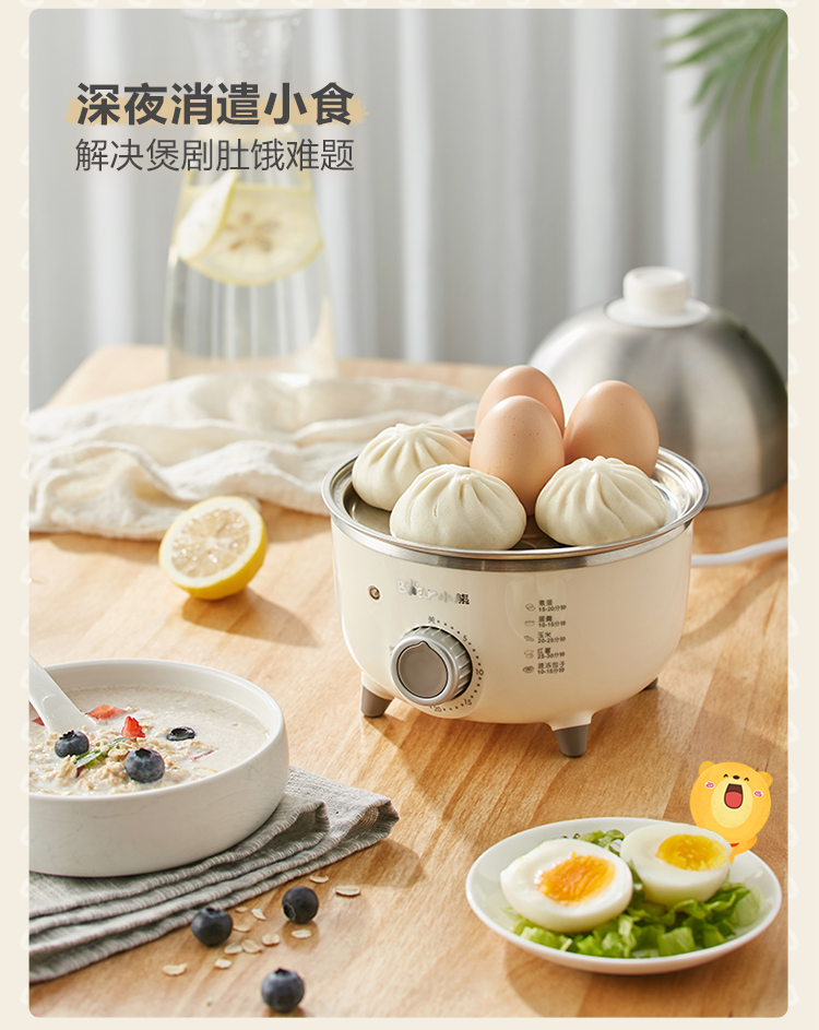 【小程序】小熊煮蛋器 ZDQ-B07C3 白色 不锈钢蒸盘+不锈钢上盖+量杯