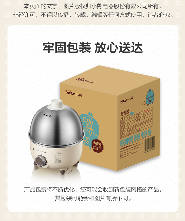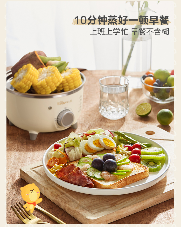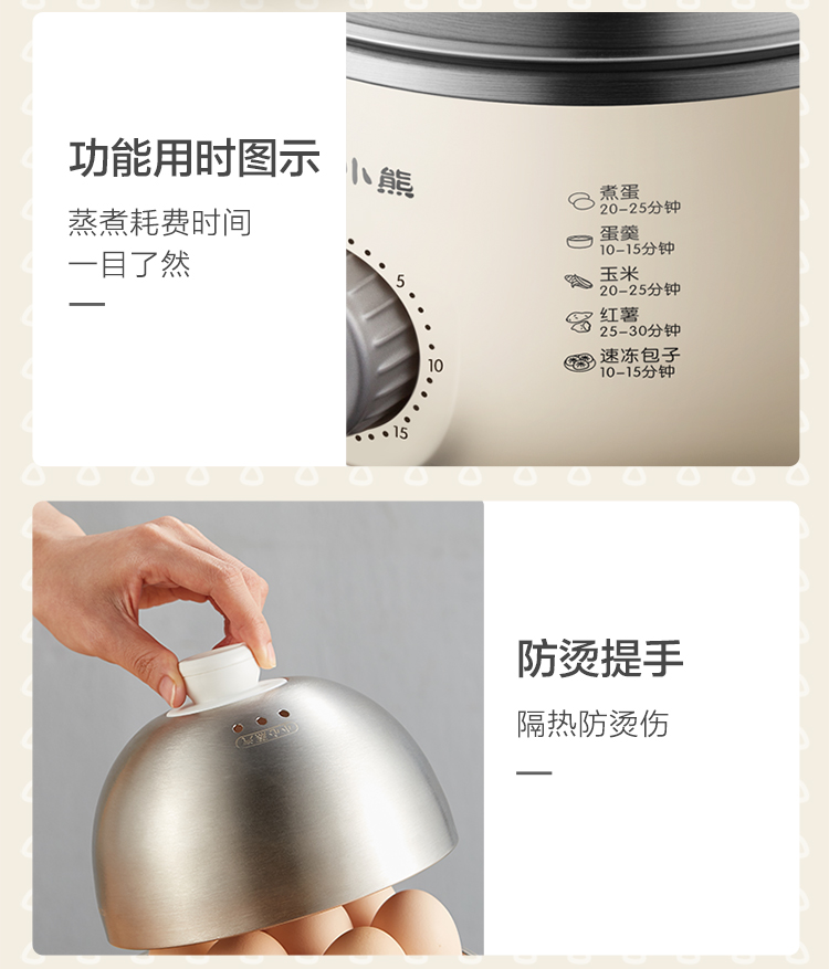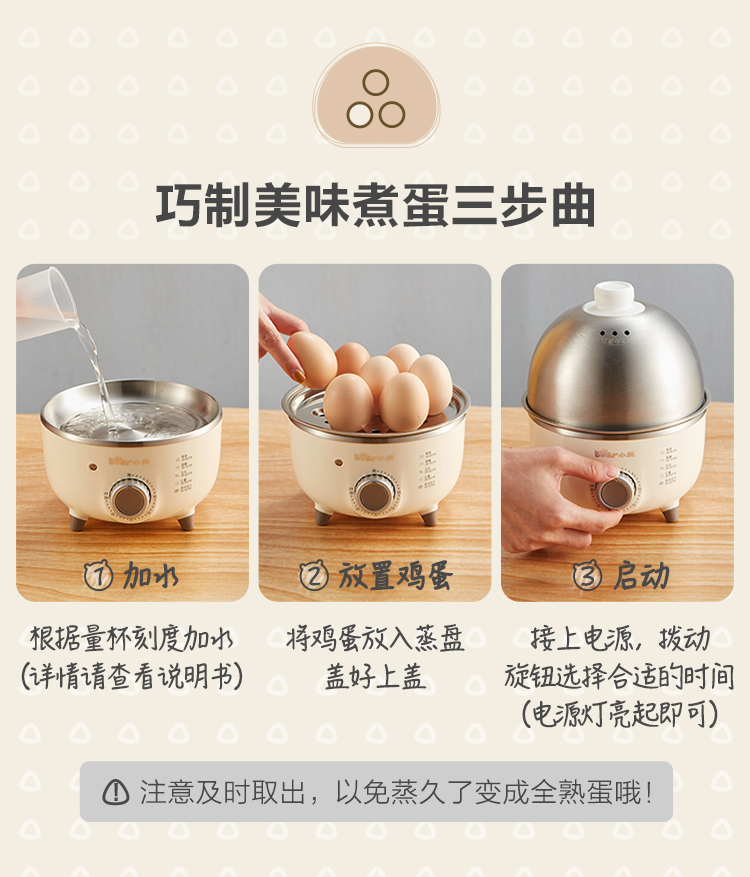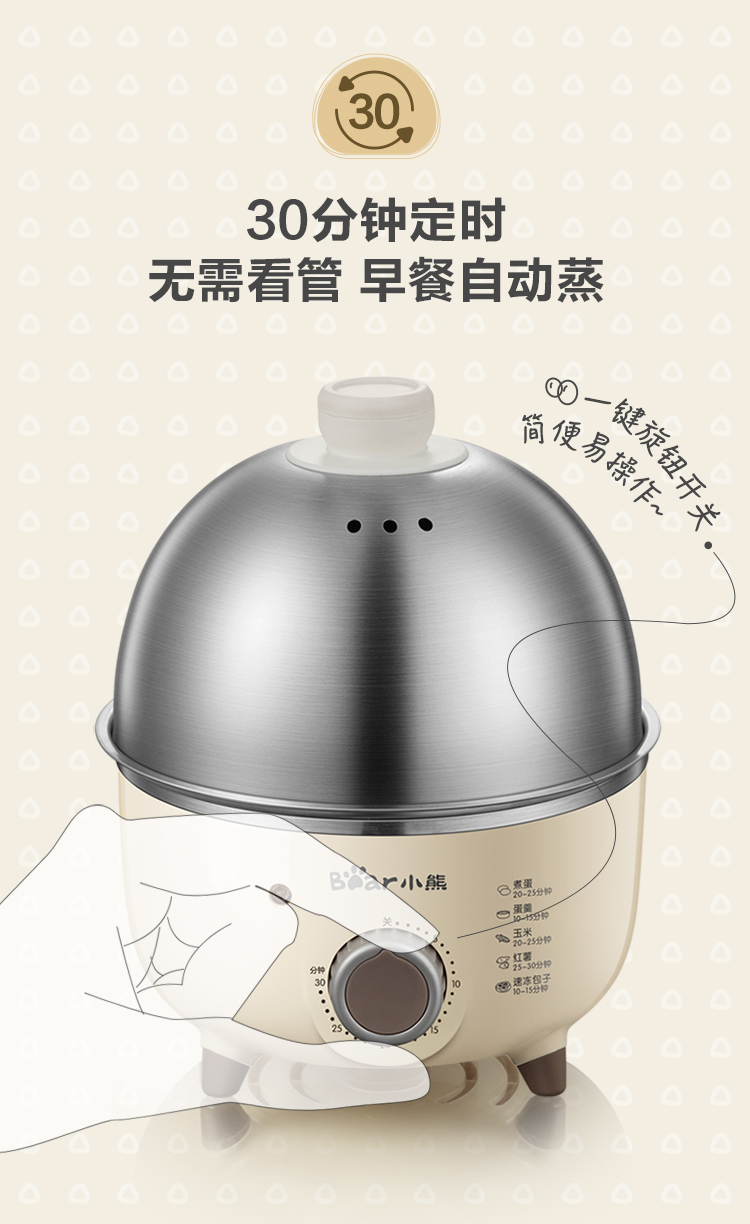 【小程序】小熊煮蛋器 ZDQ-B07C3 白色 不锈钢蒸盘+不锈钢上盖+量杯