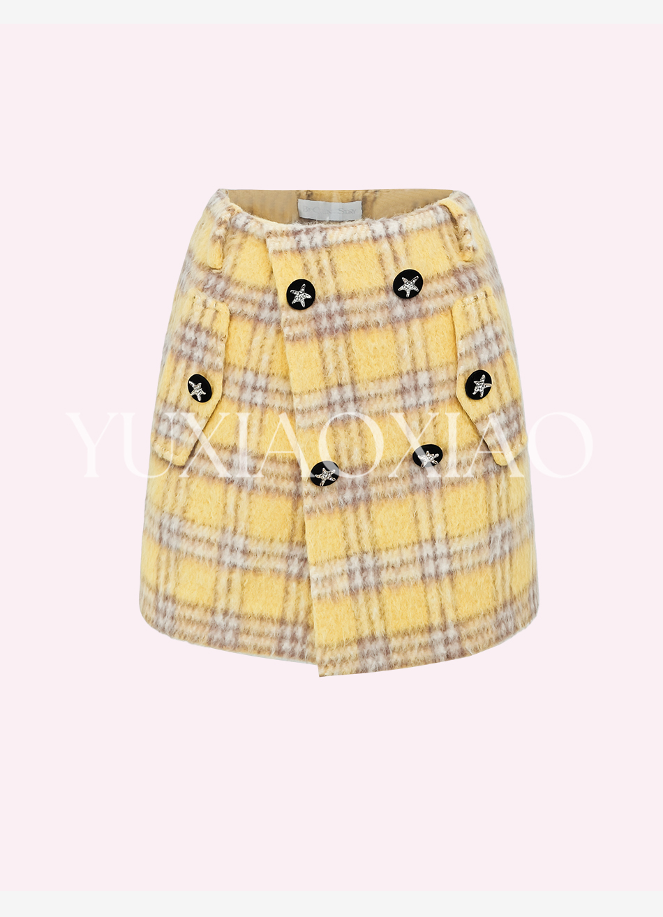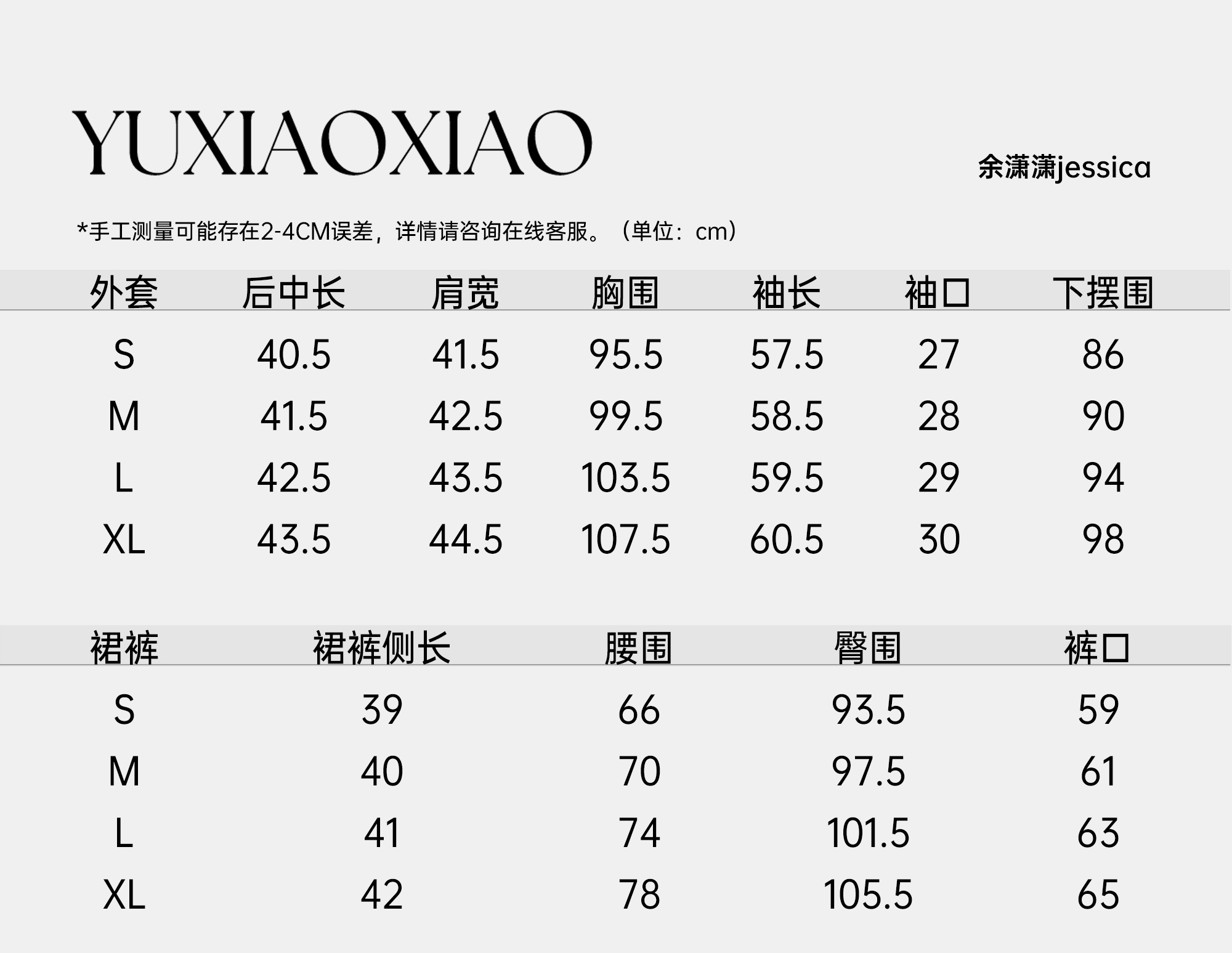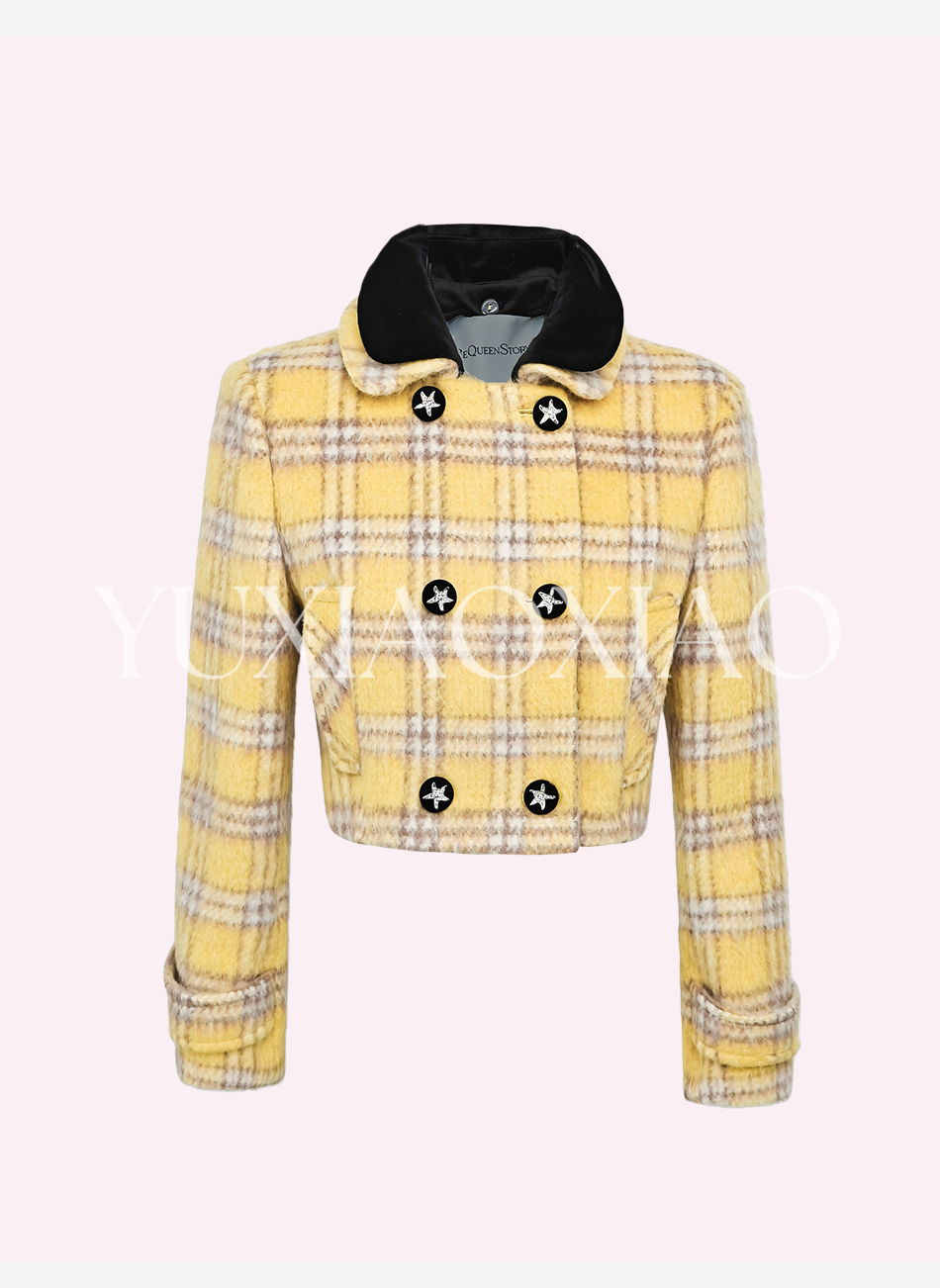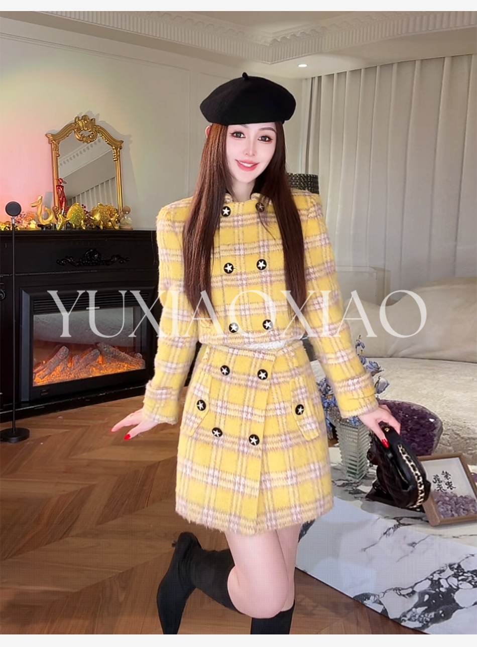 余潇潇【落日甜曲】绵羊毛混纺复古格纹毛呢短外套&A字短裙裤套装