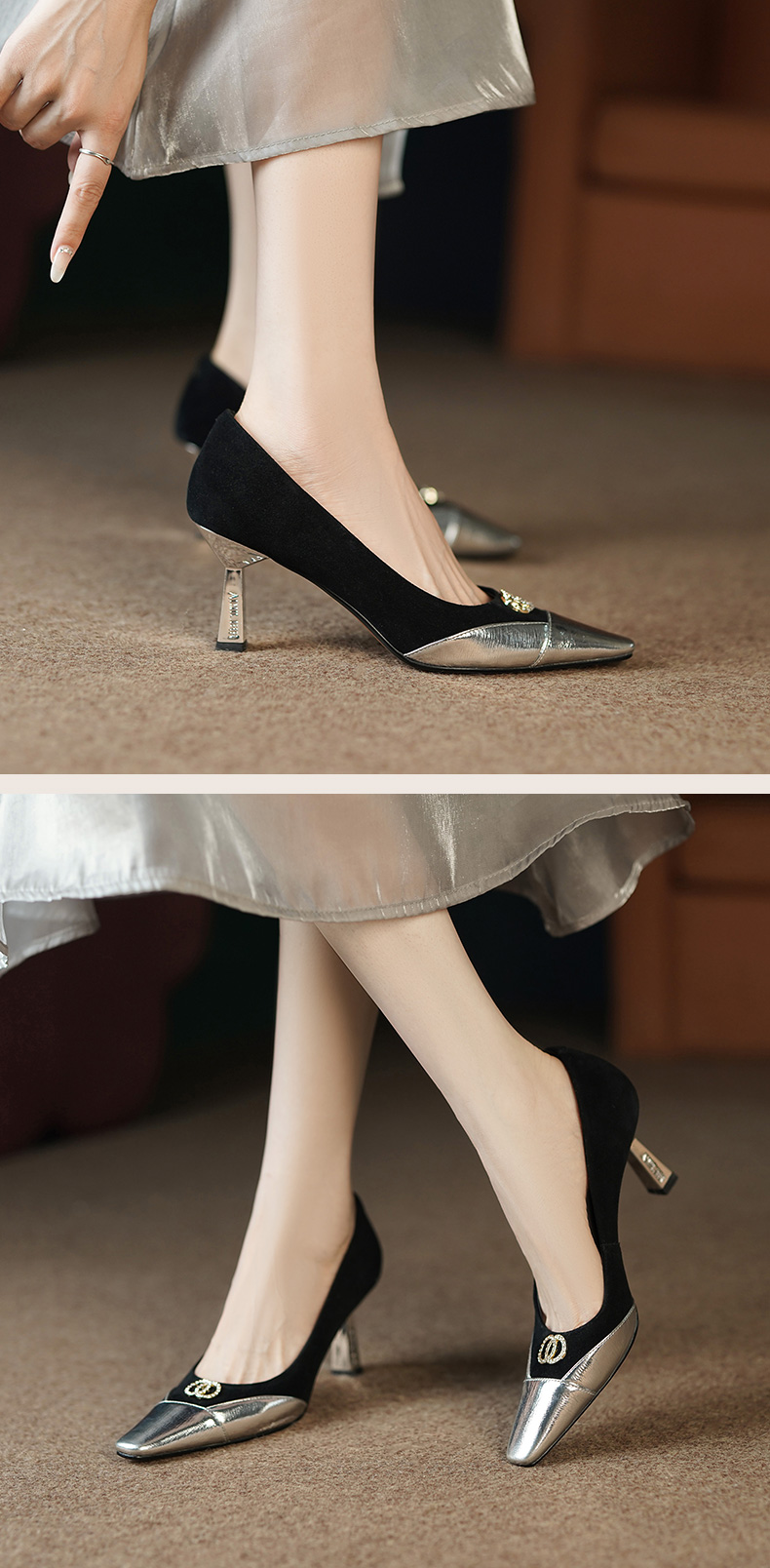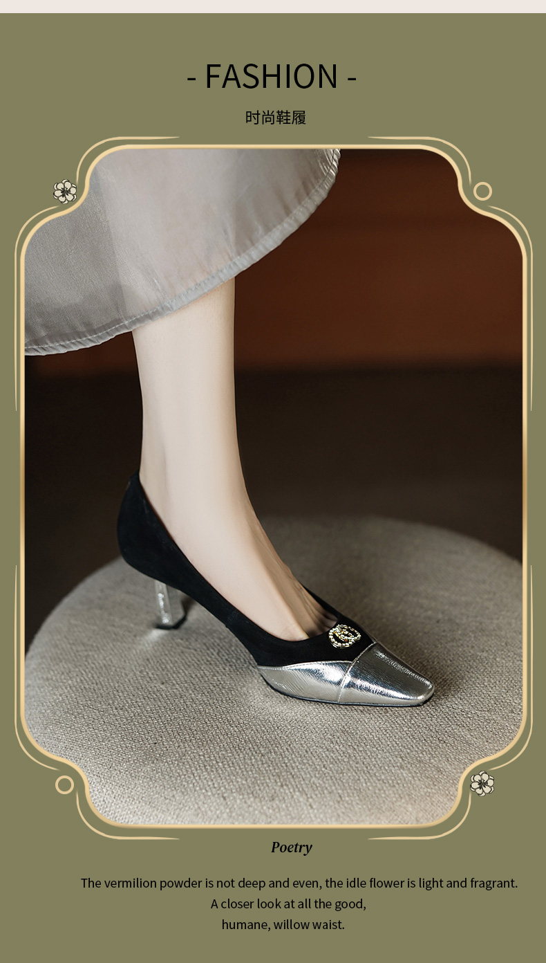 秋季新款,时尚个性撞色小香风高跟单鞋HCY-3667
