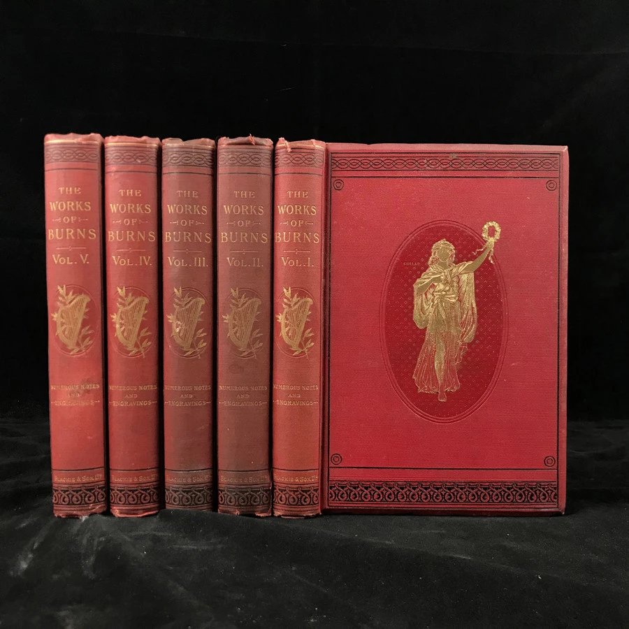1890年 罗伯特·彭斯作品集(全5卷) 约50幅版画插图 漆布精装大32开