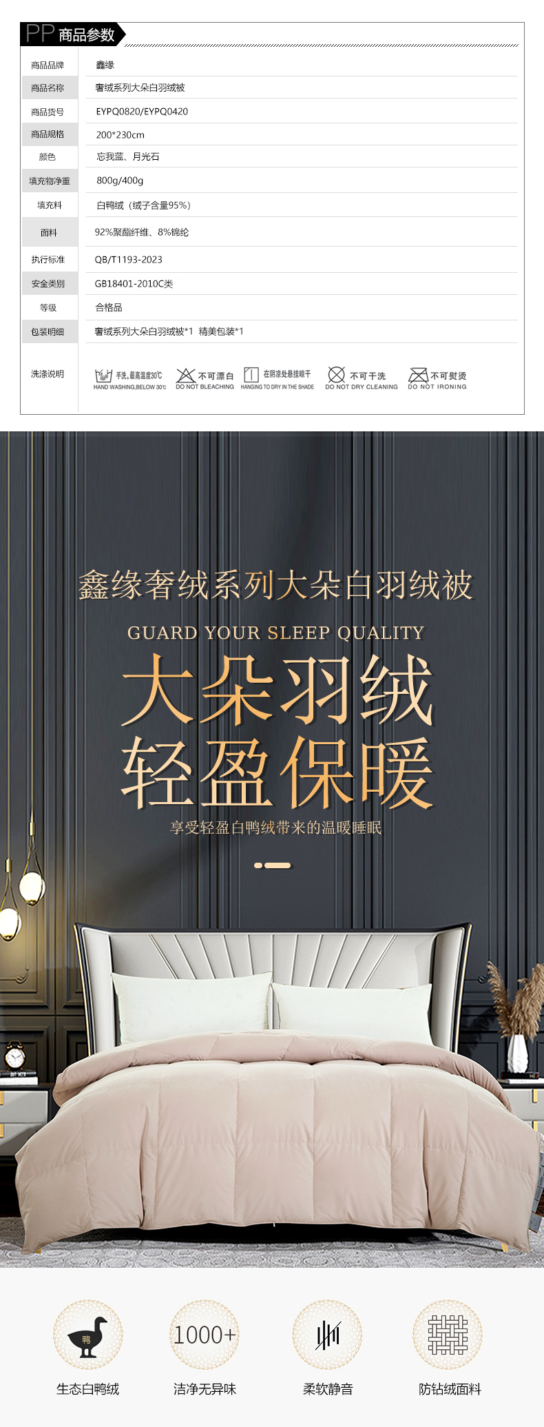 鑫缘 奢绒系列大朵白羽绒被 EYPQ0420/ EYPQ0820