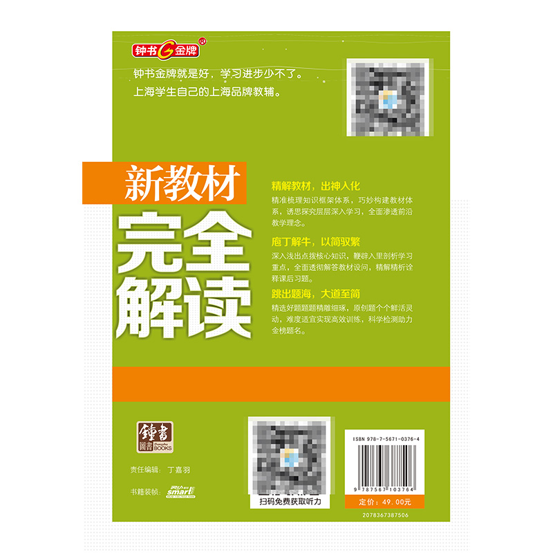 [精解教材,出神入化]精准梳理知识框架,巧妙构建教材体系,层层深入全面渗透前沿教学理念。[庖丁解牛,以简驭繁]深入浅出点拨核心知识,鞭辟入里剖析学习重点,全面透彻解答教材设问,精细诠释课后习题。[跳出题海,大道至简]选好题精雕细琢,原创题鲜活灵动,难度适宜实现高效训练,科学检测助力金榜题名。