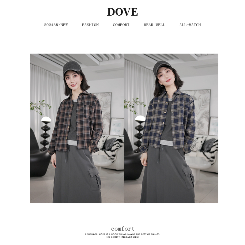 【摩卡】老板娘定制格子磨毛衬衫休闲长袖上衣衬衫