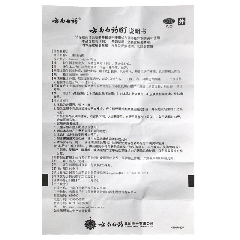 【官方正品】云南白药酊120ml 活血散瘀消肿止痛