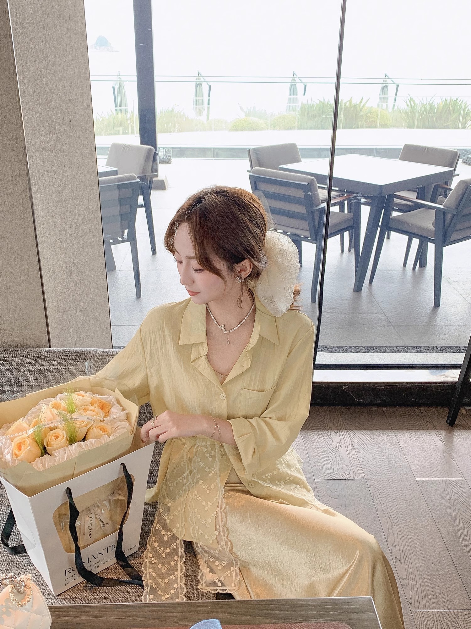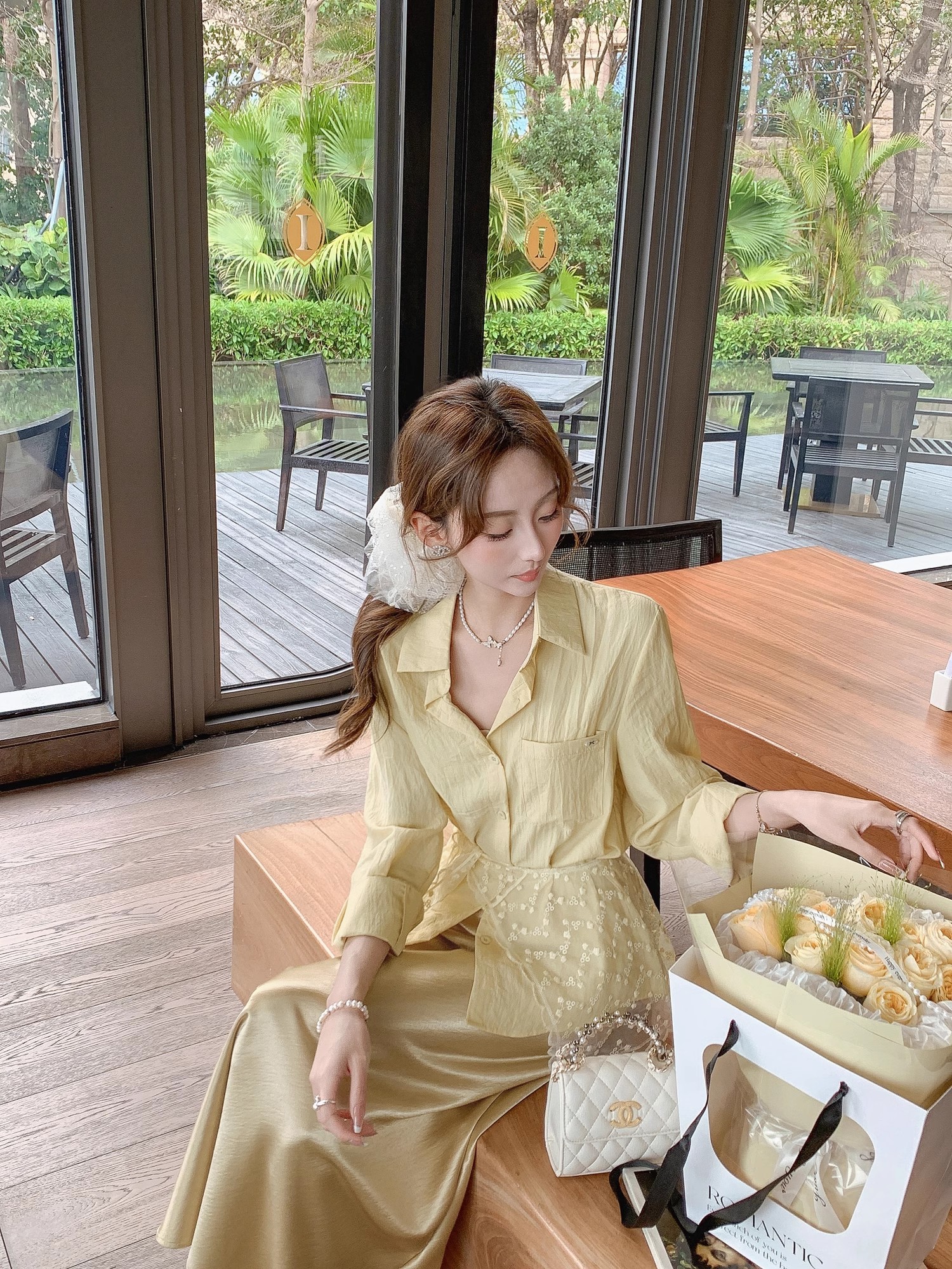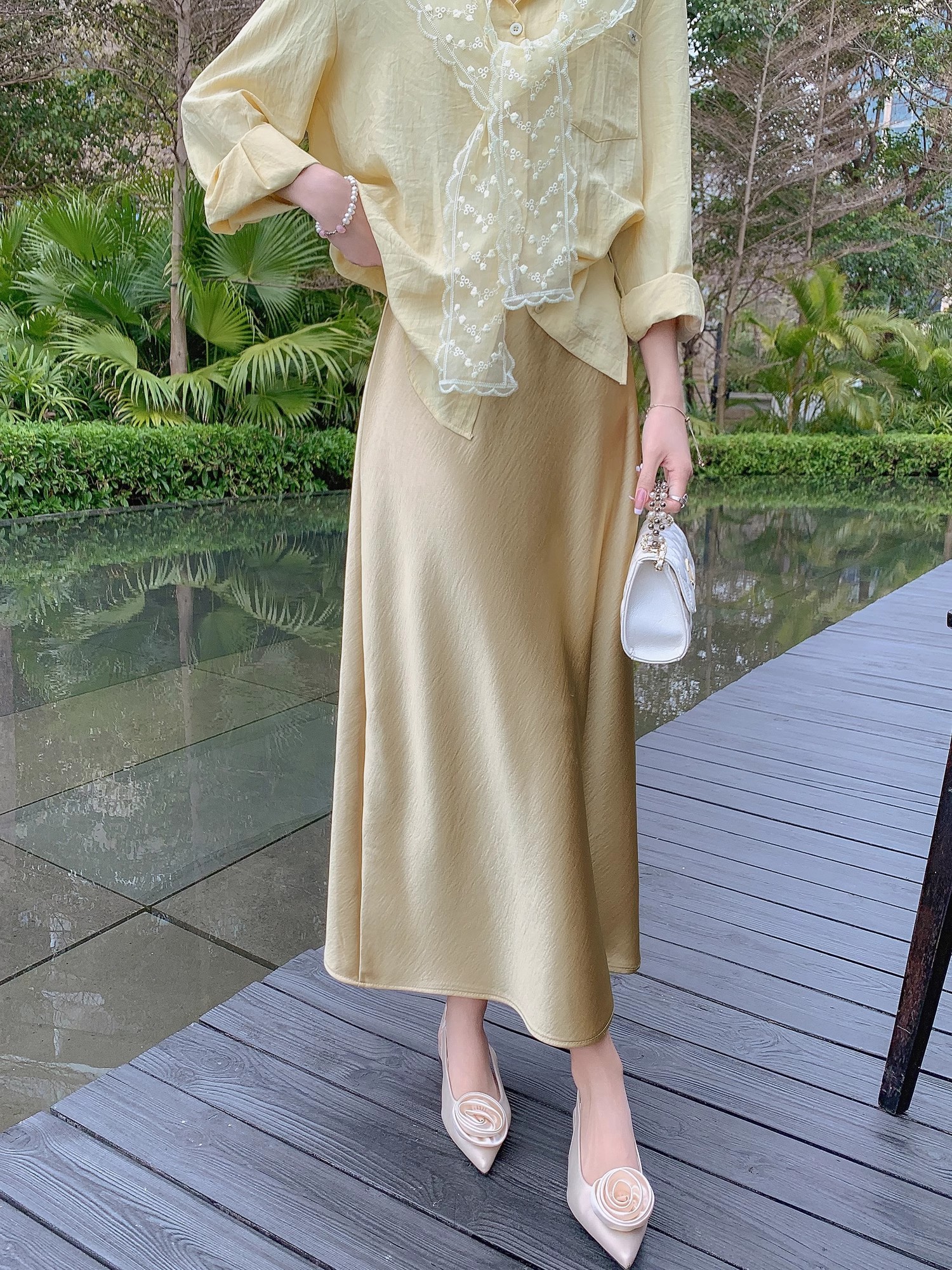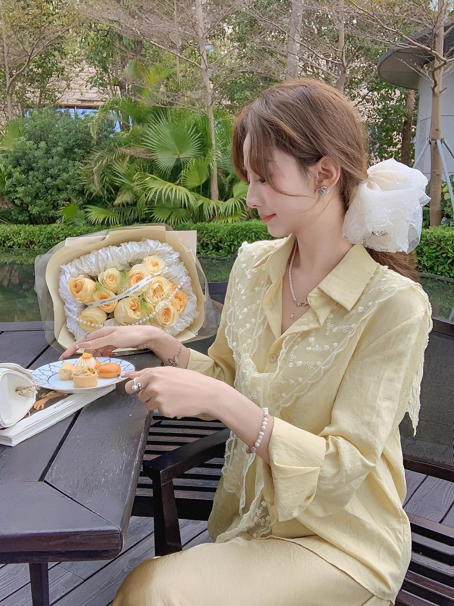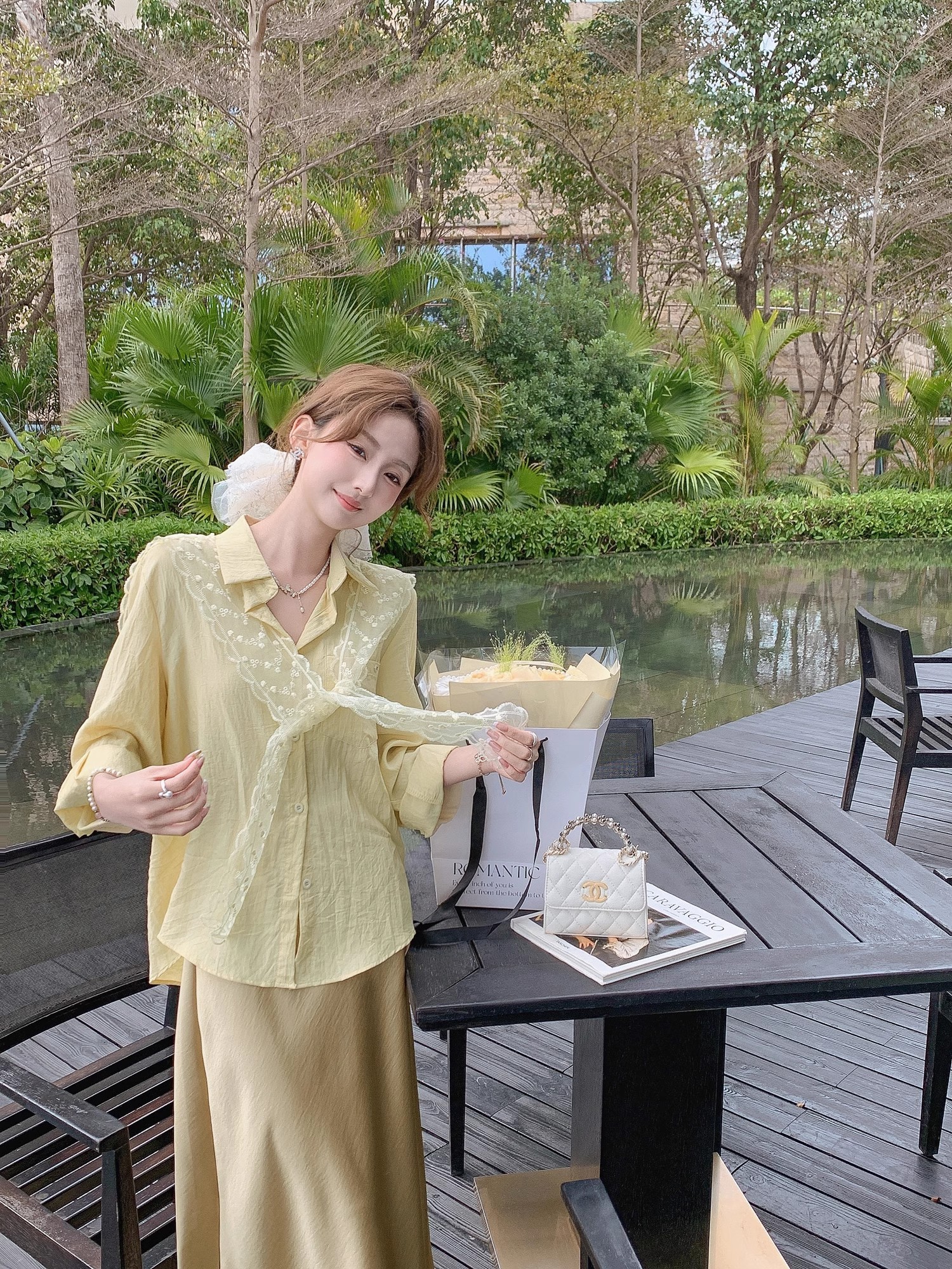 张心子【流光美学】春夏防晒通勤风气质蕾丝披肩衬衣两件套套装 U2502035