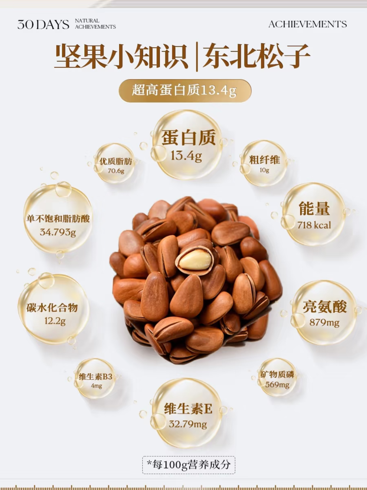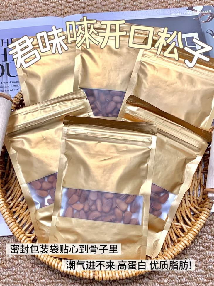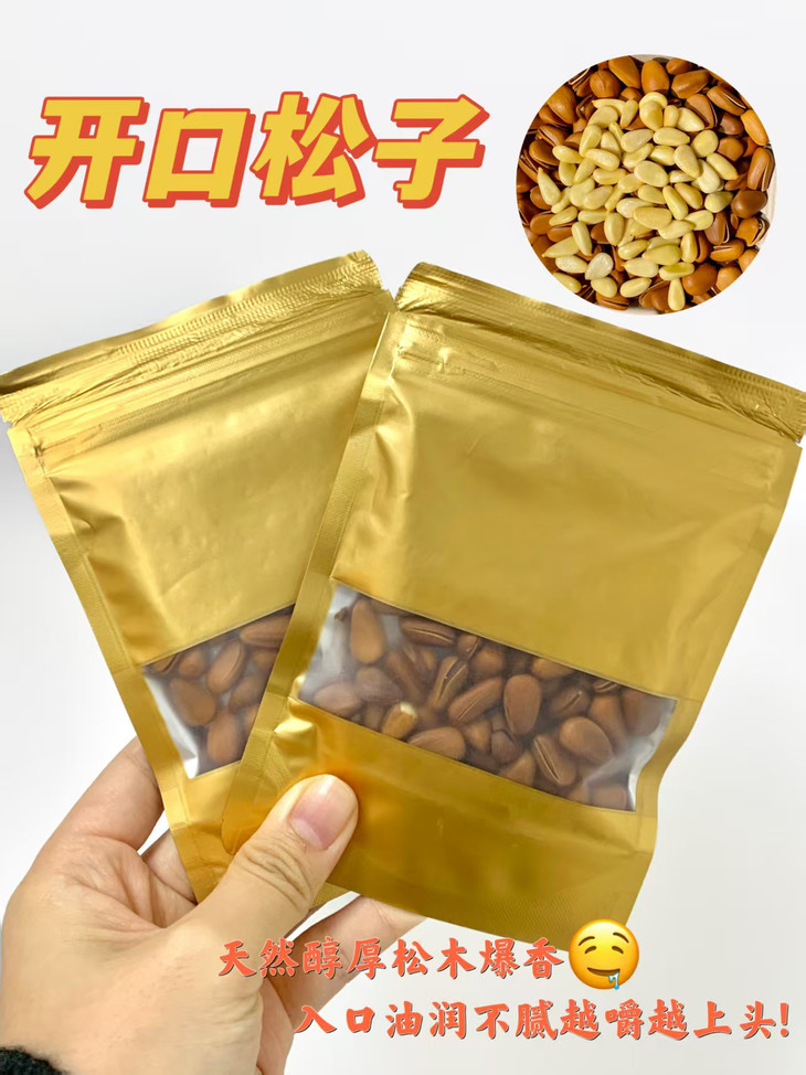 密封袋包装更是贴心到骨子里❤️ 每次吃不完随手一封 潮气进不来💧下次打开还是脆香依旧咔嚓脆 再也不用担心松子放久了变软发哈喇! 高蛋白、优质脂肪💪 好吃又健康,全家都能吃👨👩