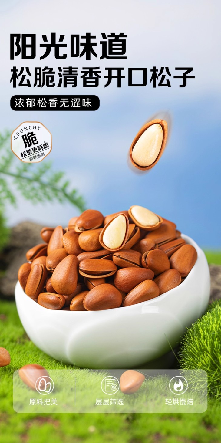 我们这款采用低温慢烘工艺🔥 不是油炸!不是油炸!不是油炸❌ 重要的事情说三遍📢📢📢 能激发松子本身的香气,又不会破坏营养成分 吃起来香而不燥 就算多炫几包也不怕上火🔥