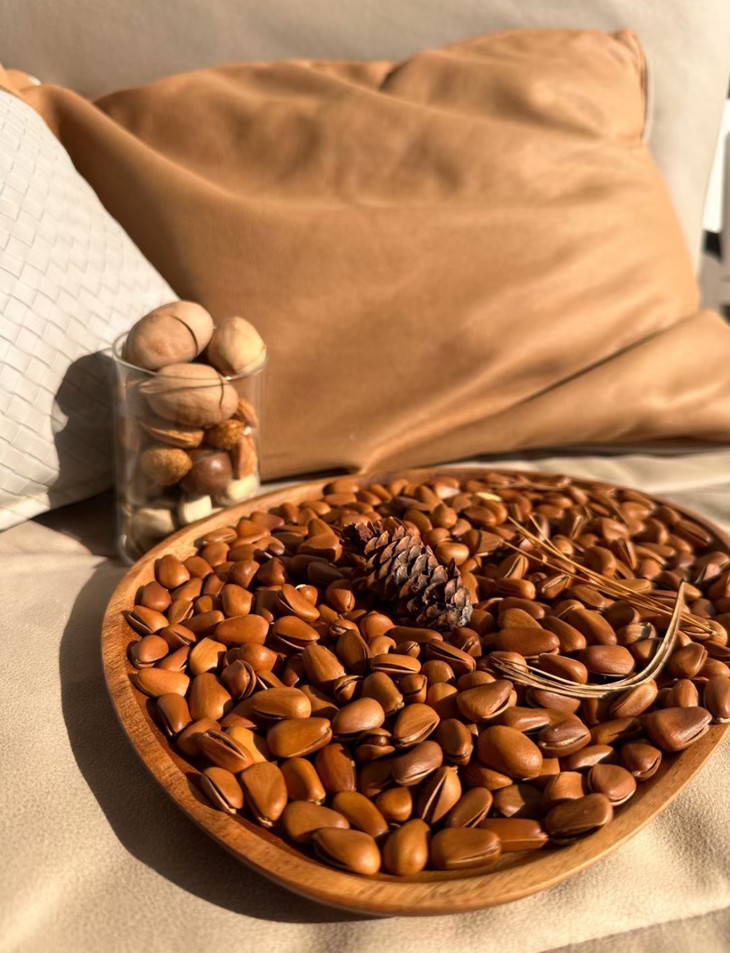 果仁饱满得快要溢出来💥 琥珀色的外衣一剥就掉 露出雪白油润的果肉 放进嘴里轻轻一嚼 油脂香在唇齿间炸开💥 关键是酥香不腻😌 不知不觉半袋就空了 壳堆得像小山一样⛰️