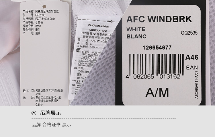专柜正品ADIDAS阿迪达斯阿森纳足球运动梭织风衣男 GQ2535