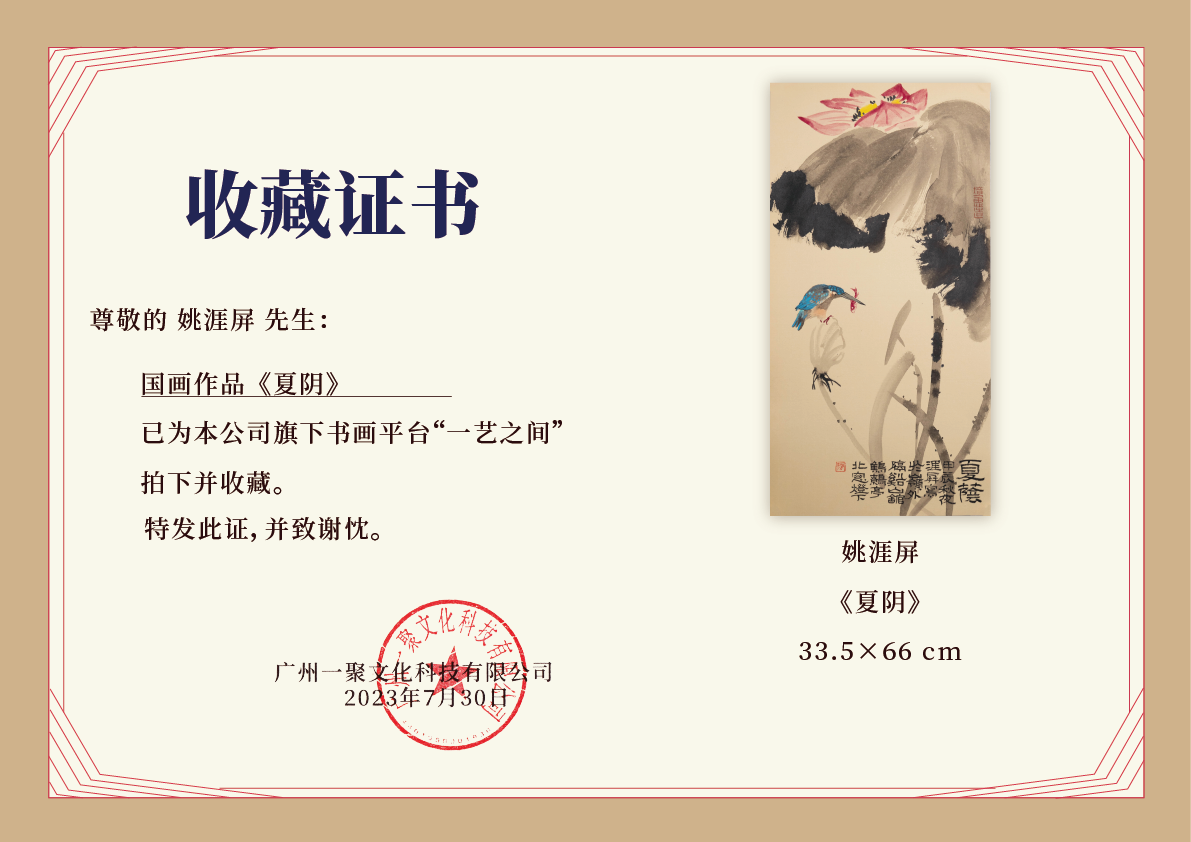 姚涯屏《夏阴》国画66CM×33.5CM 约2平尺手绘纸本宣纸作品(荷花,翠鸟)【原作编号GH0409】